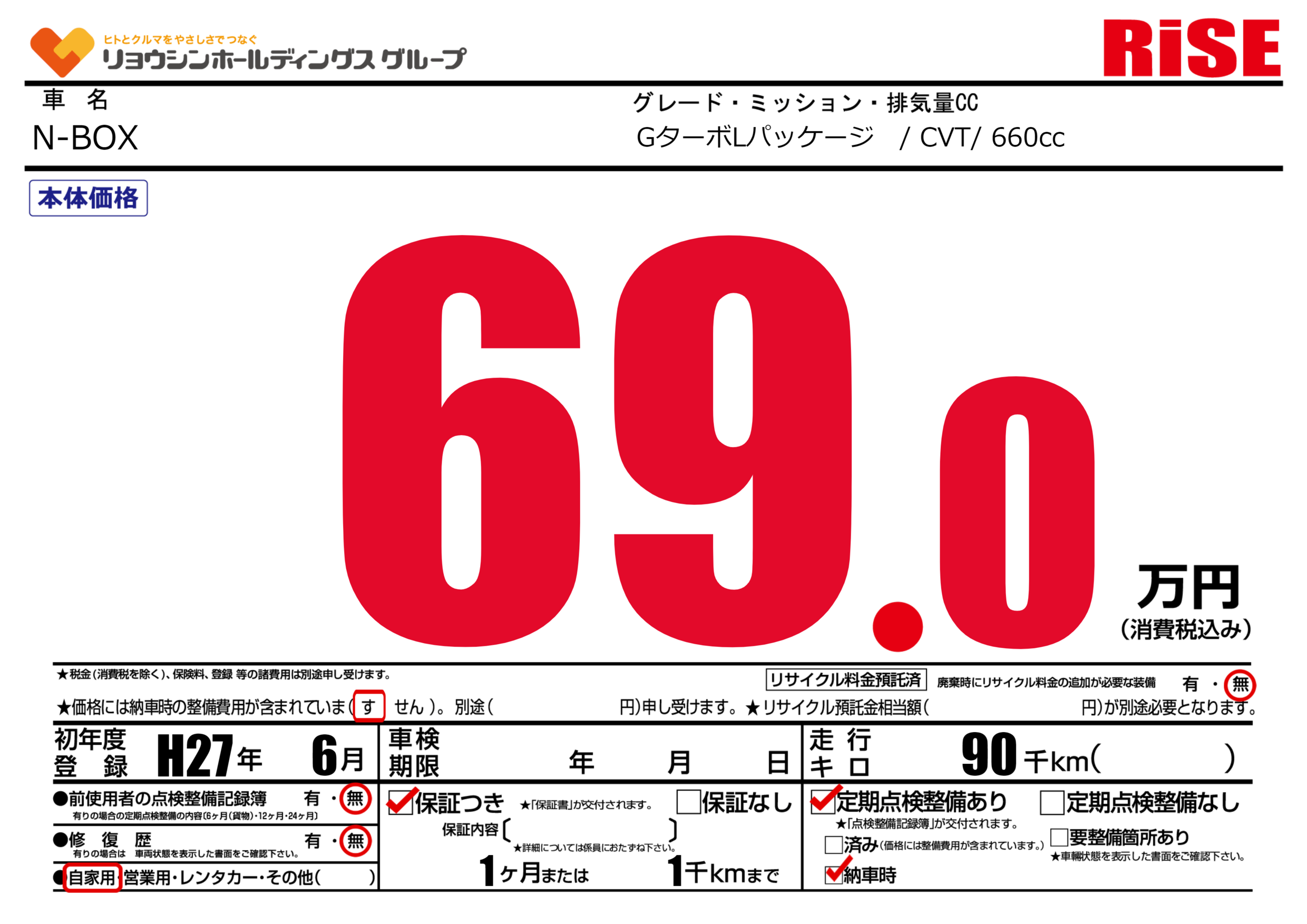 | 車名 | N-BOX | グレード ミッション 排気量 |