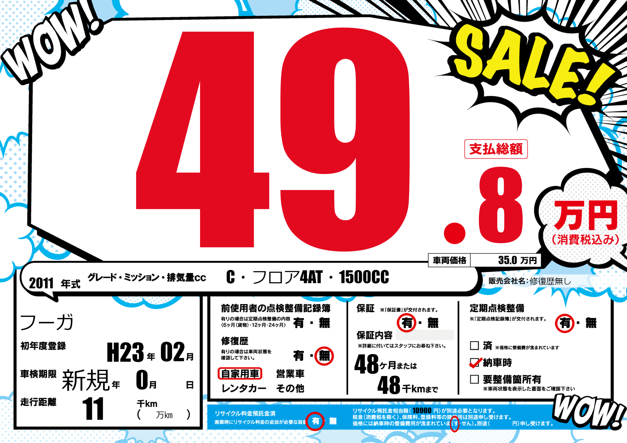 定期点検整備 定期点検整備あり 納車時あり