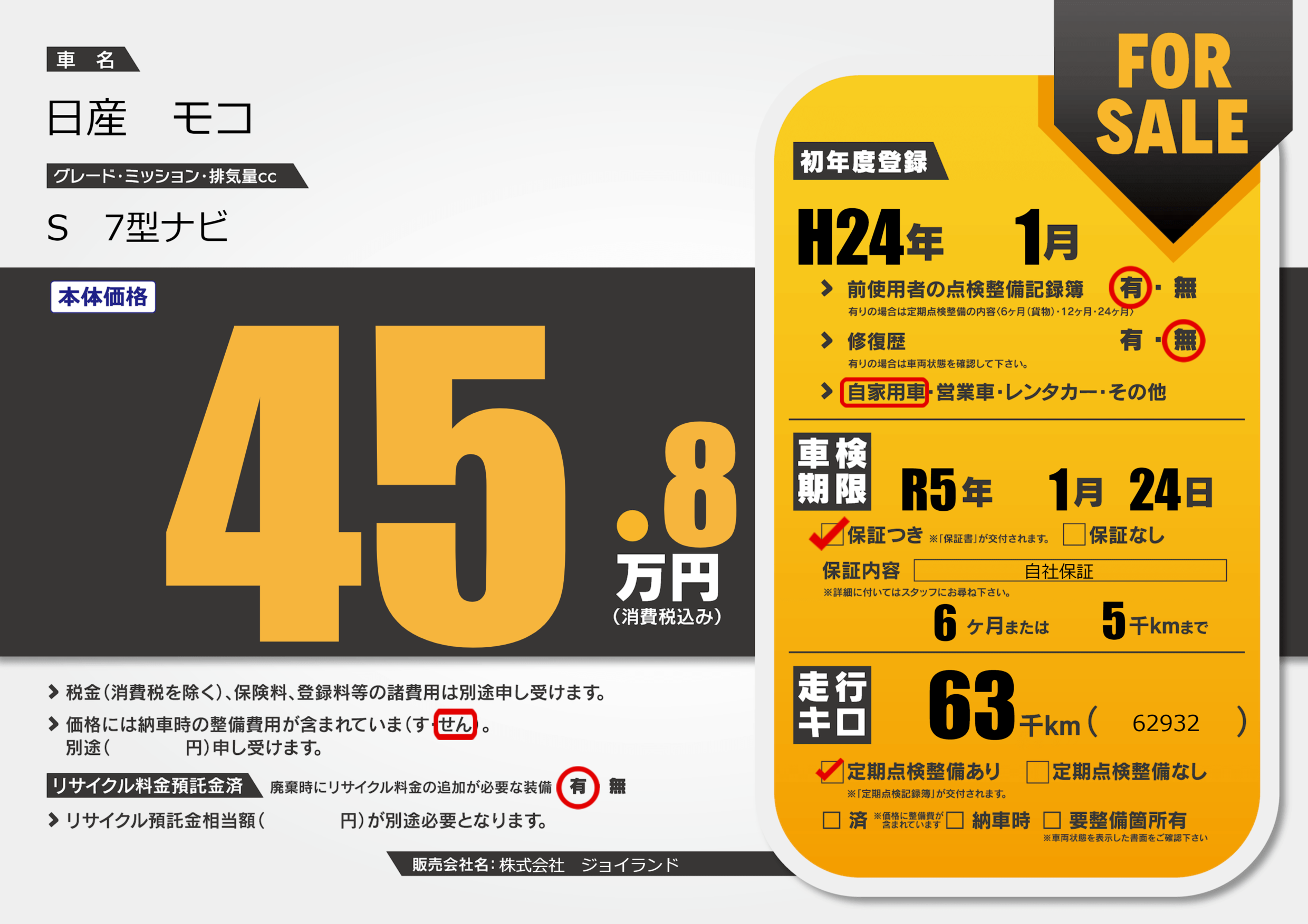 なし | 車検制限 | R5年1月24月 |