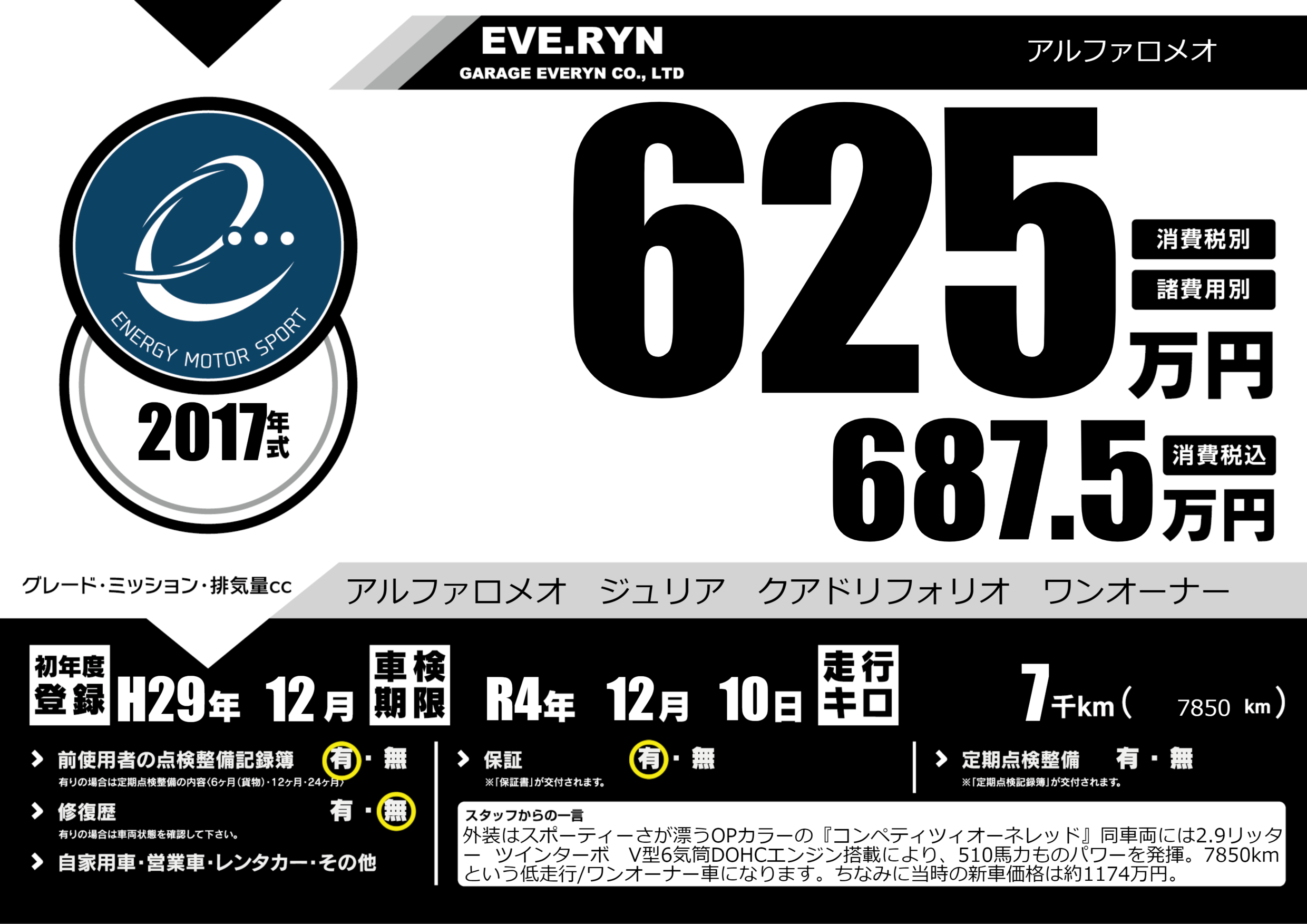 アルファロメオ ジュリア クアドリフォリオ ワンオーナー |