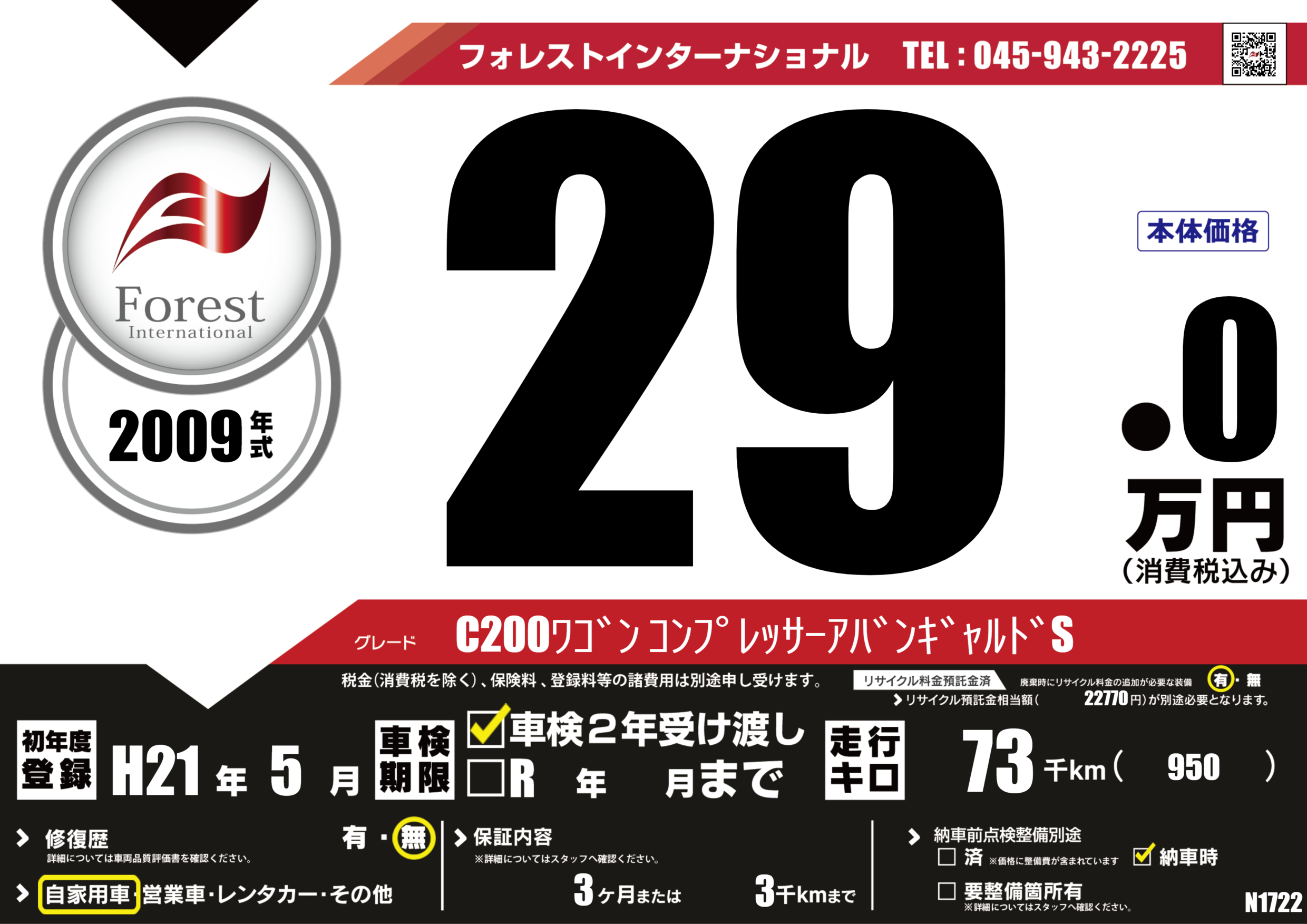 | 走行キロ | 7.3万km | 初年度登録 | H21年5月 |
