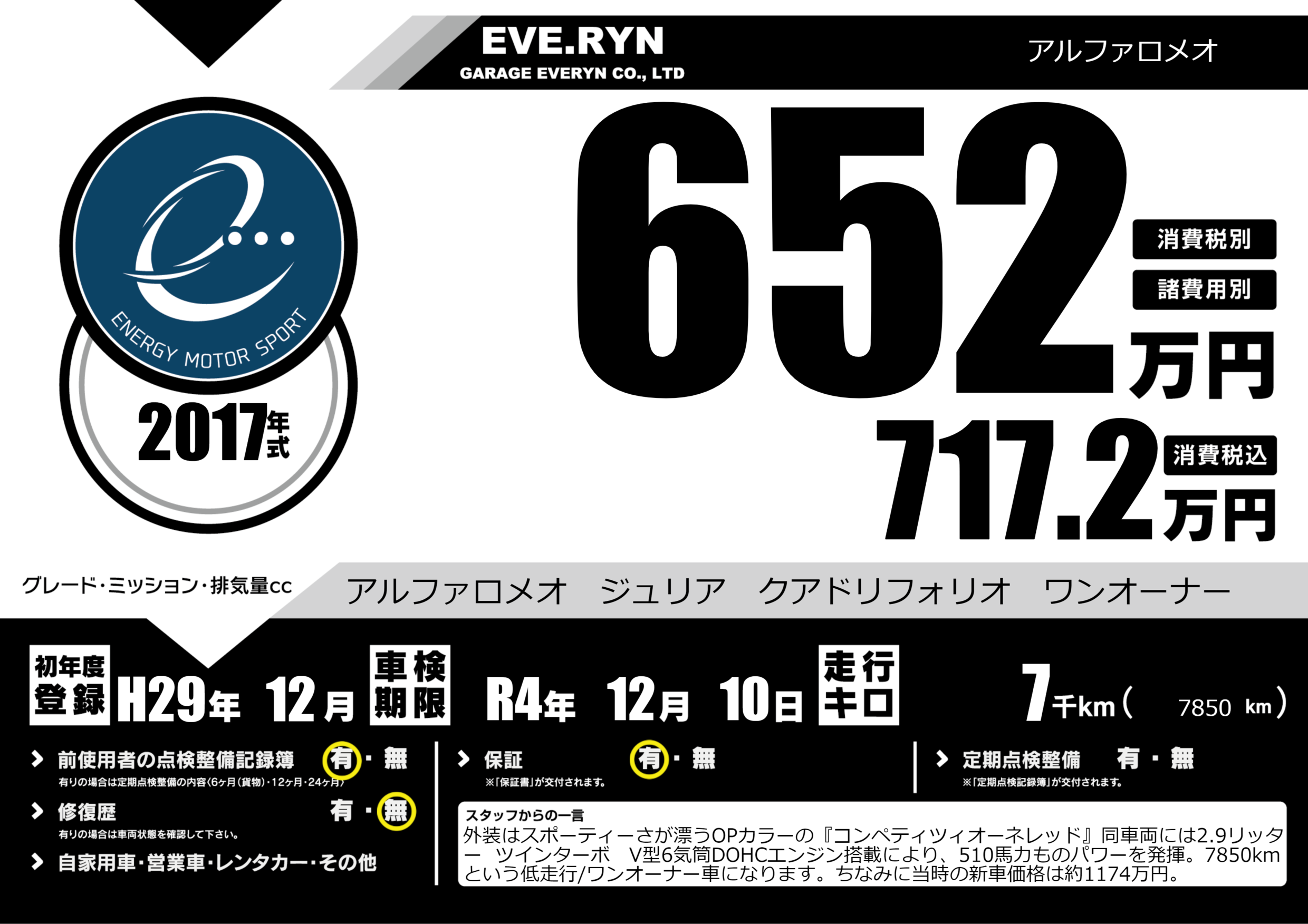 アルファロメオ ジュリア クアドリフォリオ ワンオーナー |