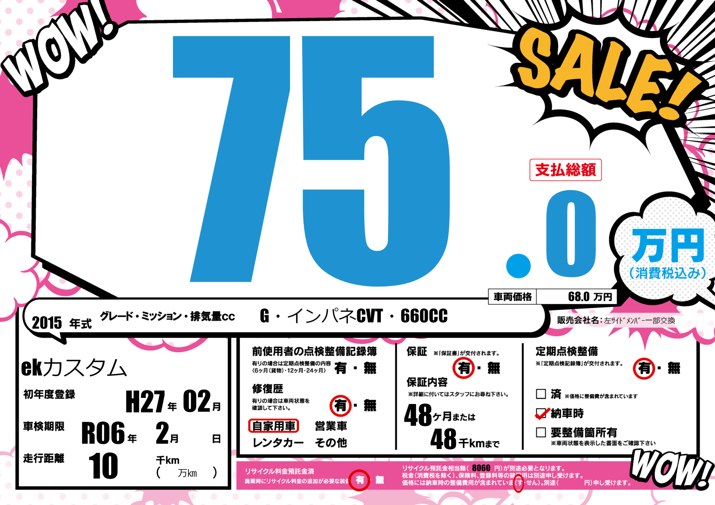 保証付き 保証内容(---) 48ヶ月または(48)千kmまで |