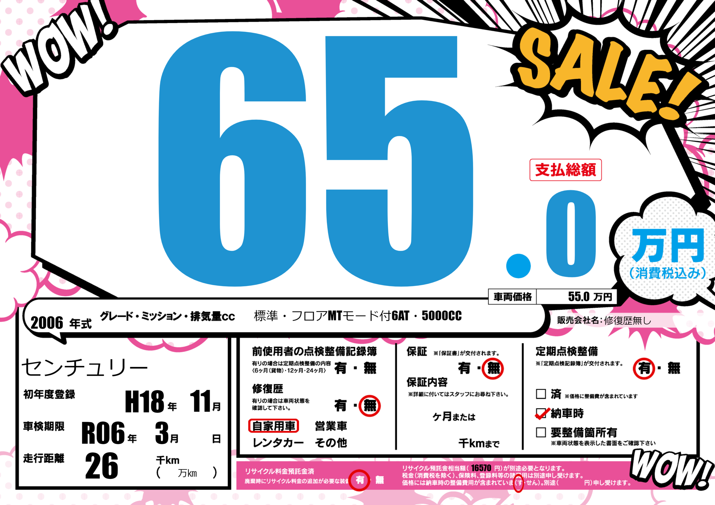 | 車名 | センチュリー | グレード ミッション 排気量 |