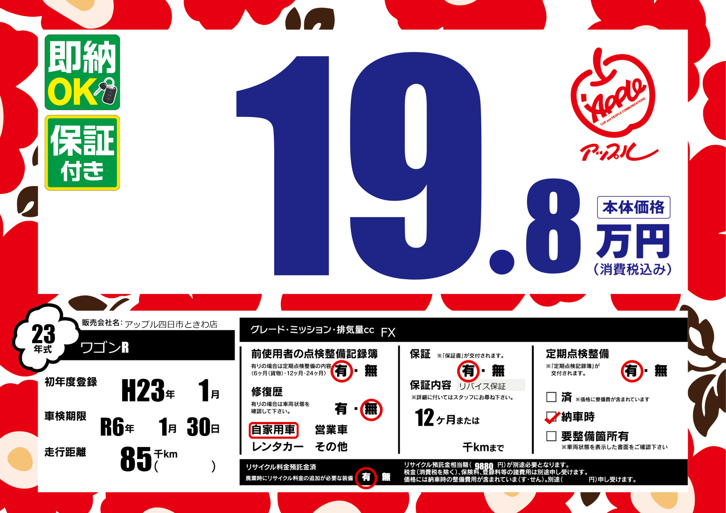 なし | 車検制限 | R6年1月30月 |