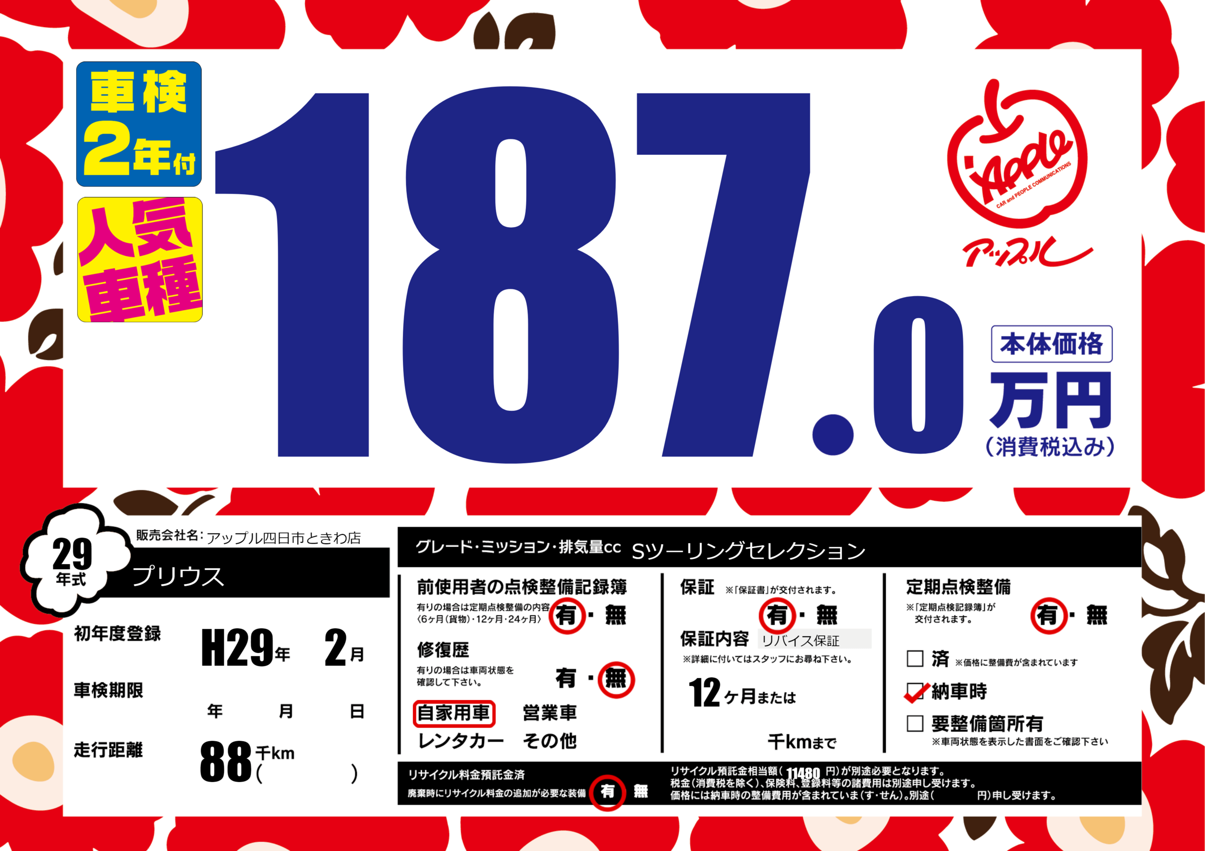 | 車名 | プリウス | グレード ミッション 排気量 |