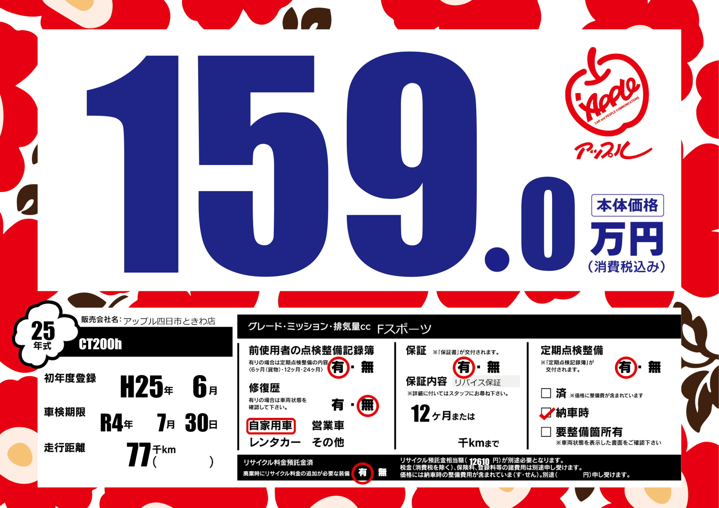 | 車名 | CT200h | グレード ミッション 排気量 |