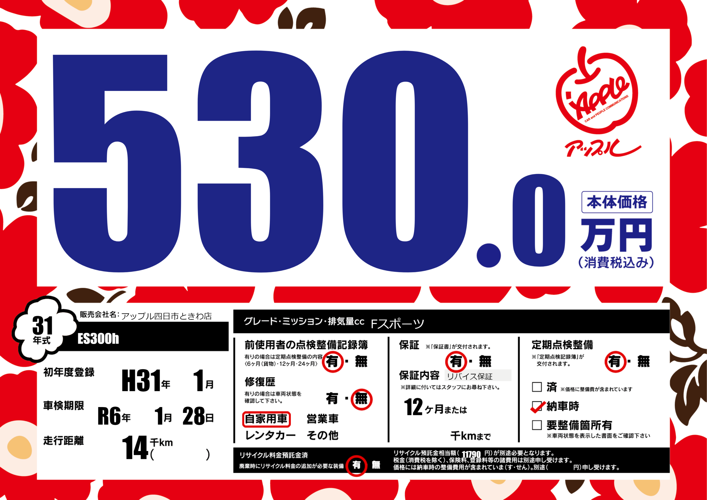 | 車名 | ES300h | グレード ミッション 排気量 |