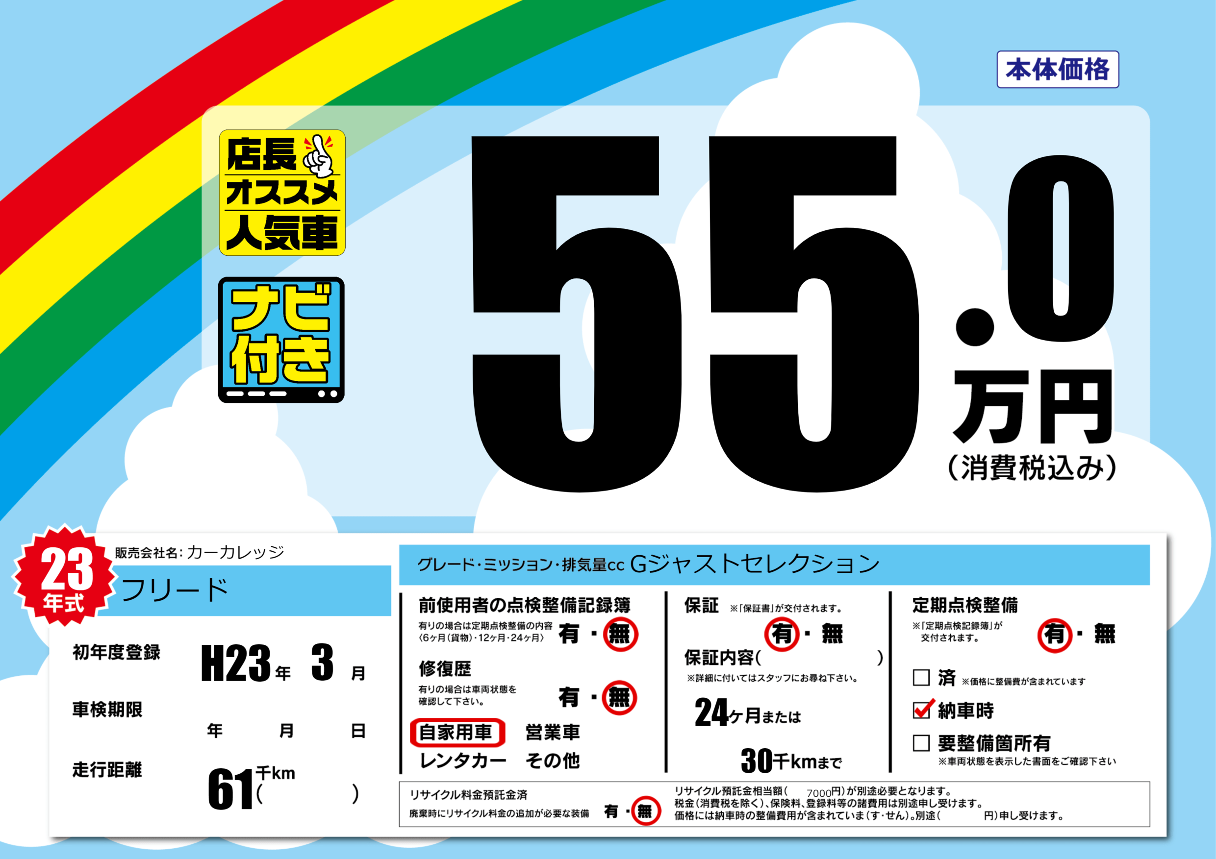| 走行キロ | 6.1万km | 初年度登録 | H23年3月 |
