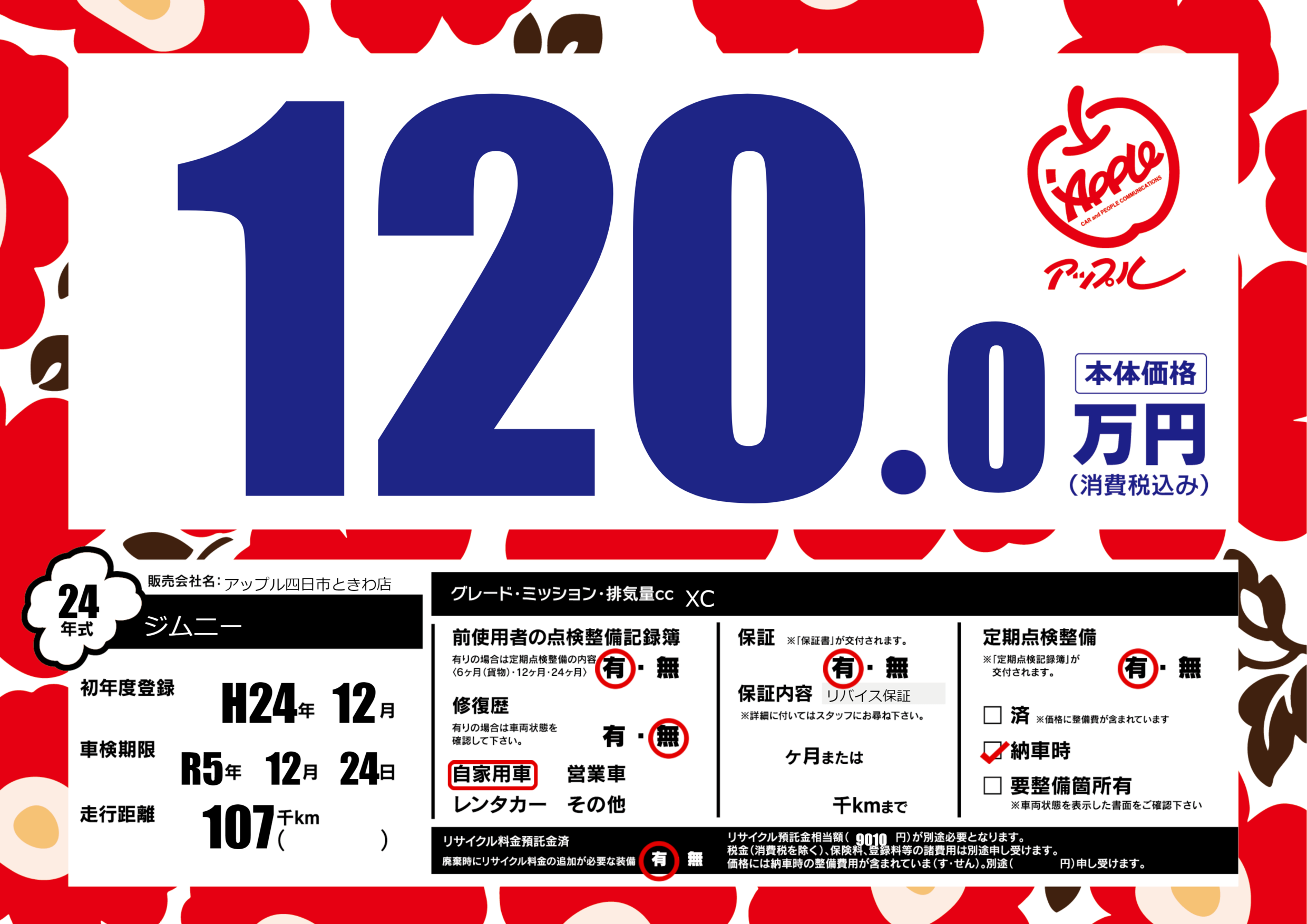 | 車名 | ジムニー | グレード ミッション 排気量 |