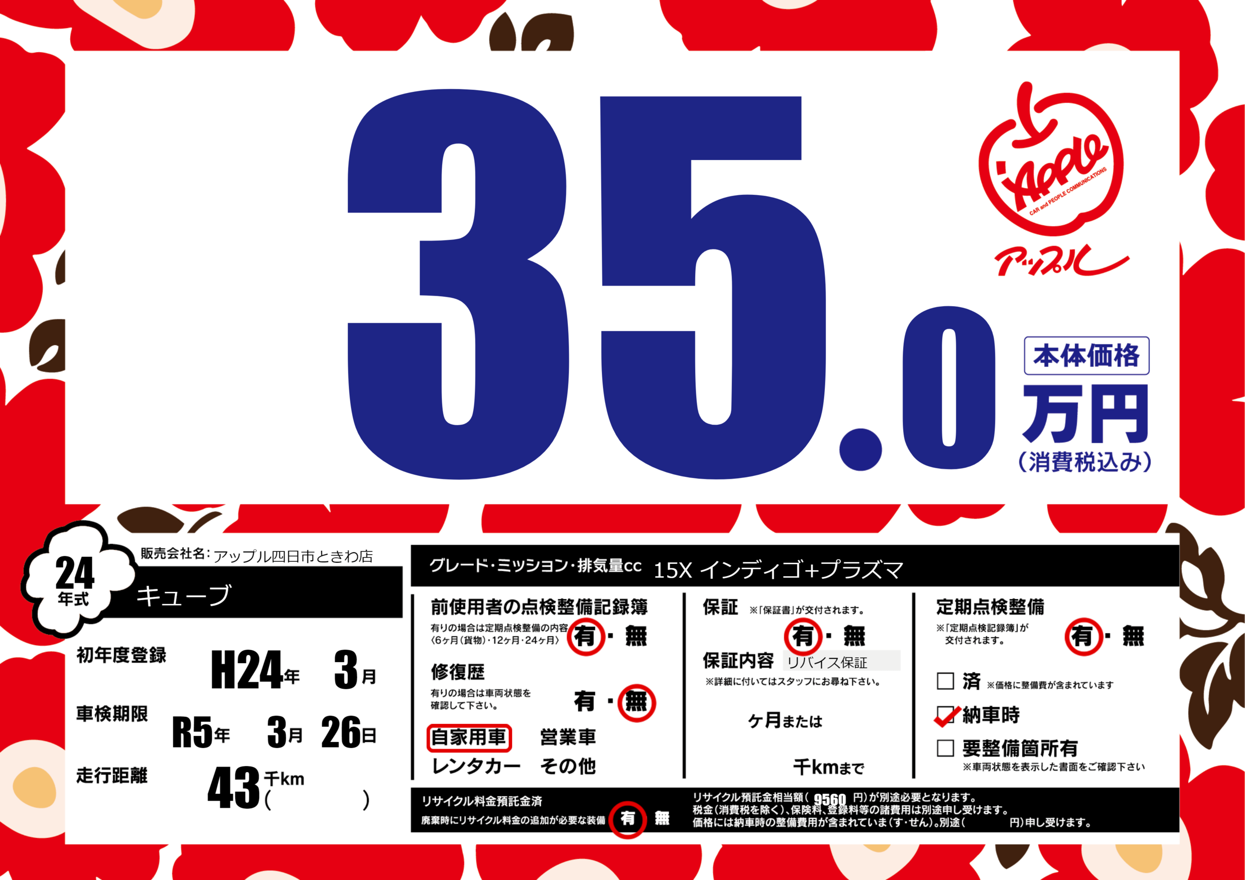 | 走行キロ | 4.3万km | 初年度登録 | H24年3月 |