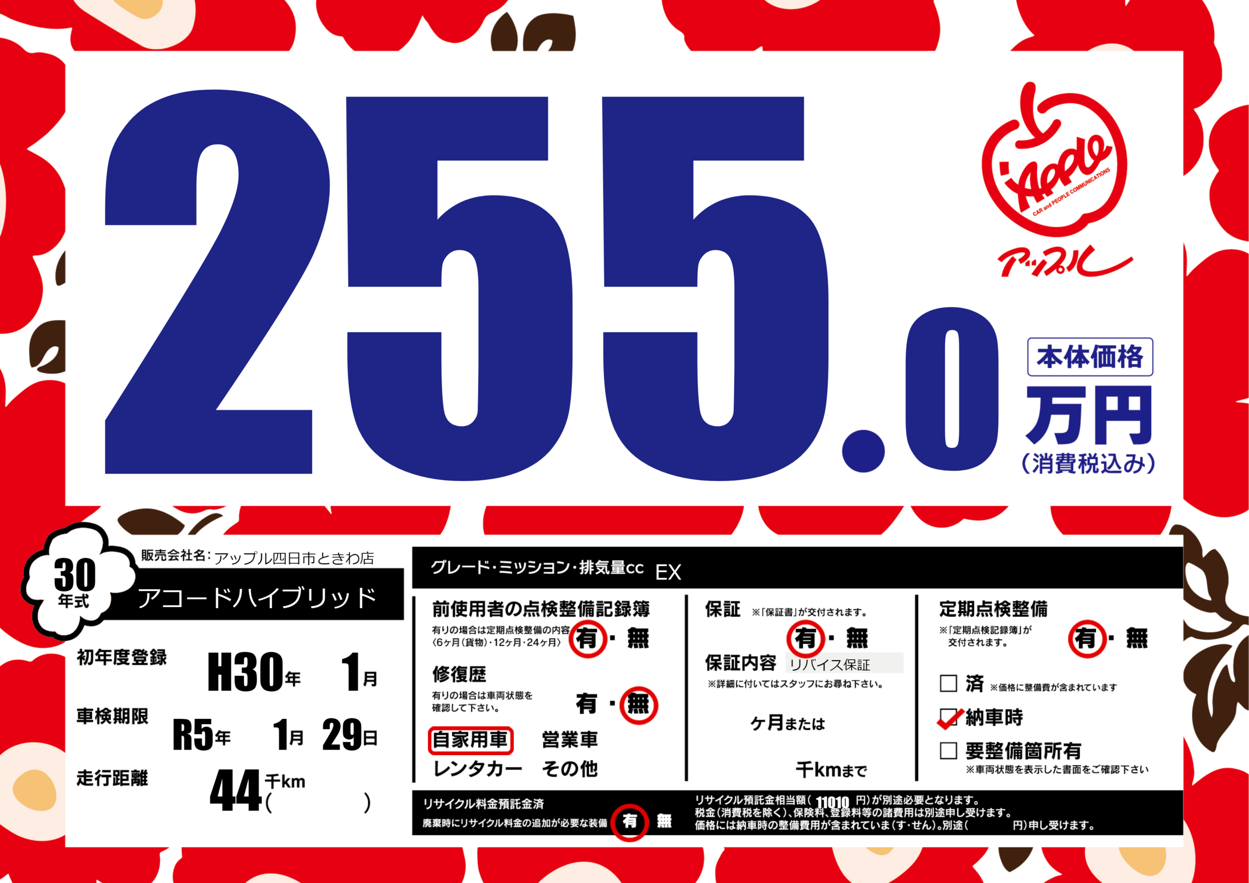 保証付き 保証内容(リバイス保証) ---ヶ月または()千kmまで |