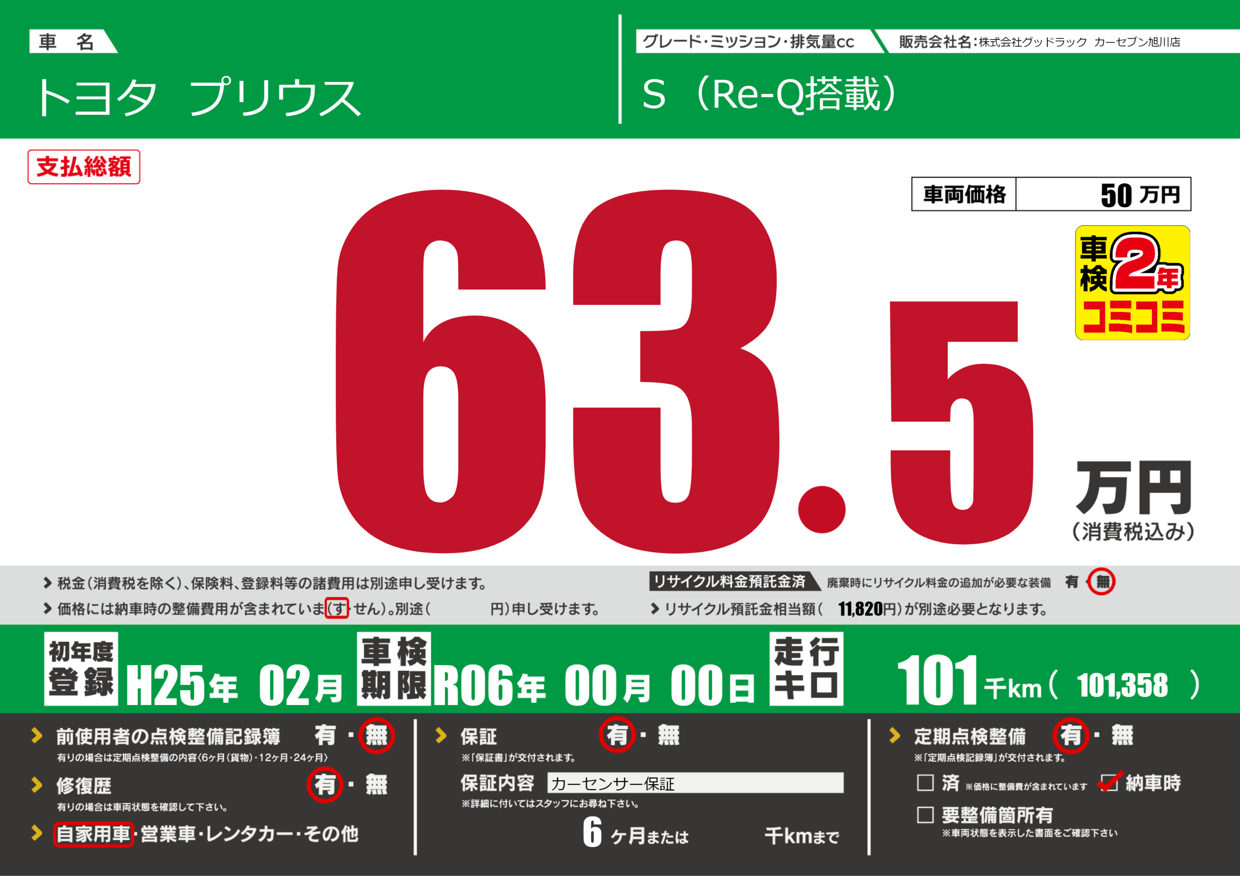 | 定期点検整備 | 定期点検整備あり 納車時あり | ||