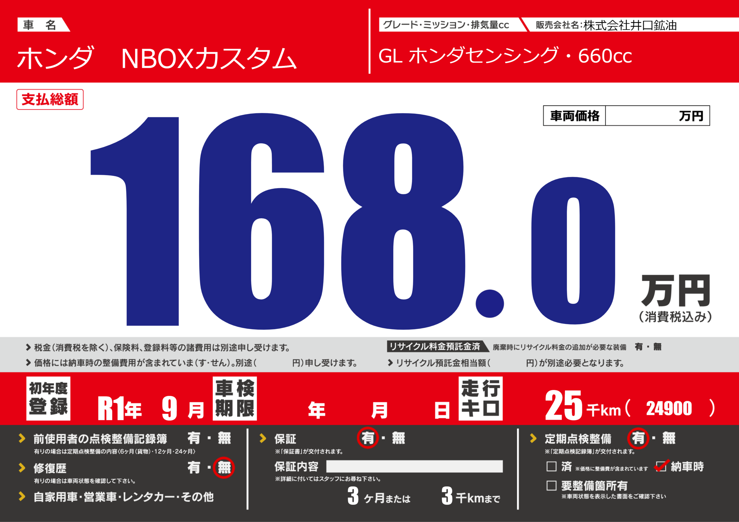 保証付き 保証内容(---) 3ヶ月または(3)千kmまで |