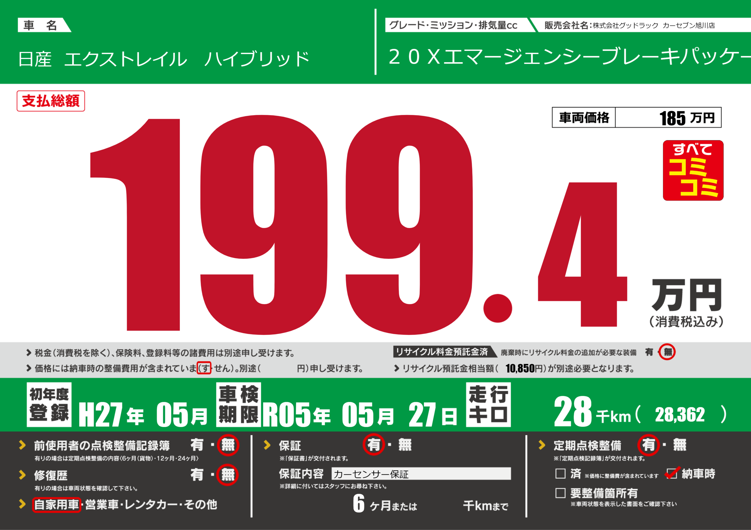 あり | 車検制限 | R05年05月27月 |