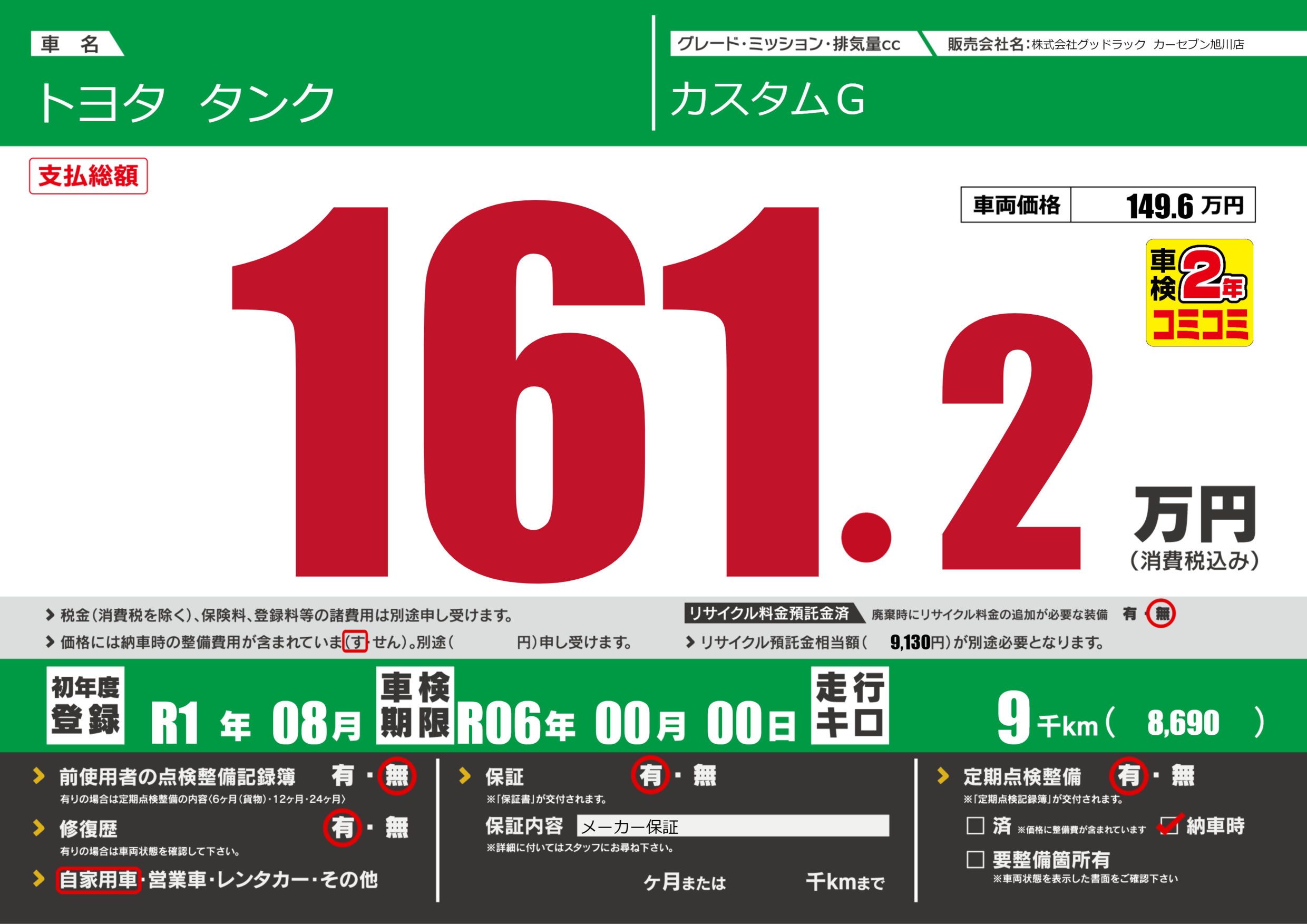 | 車検制限 | R06年 00月 00日 | ||