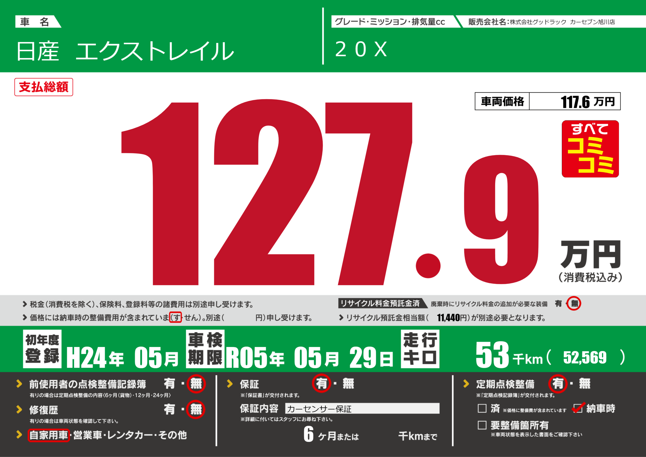 あり | 車検制限 | R05年05月29月 |