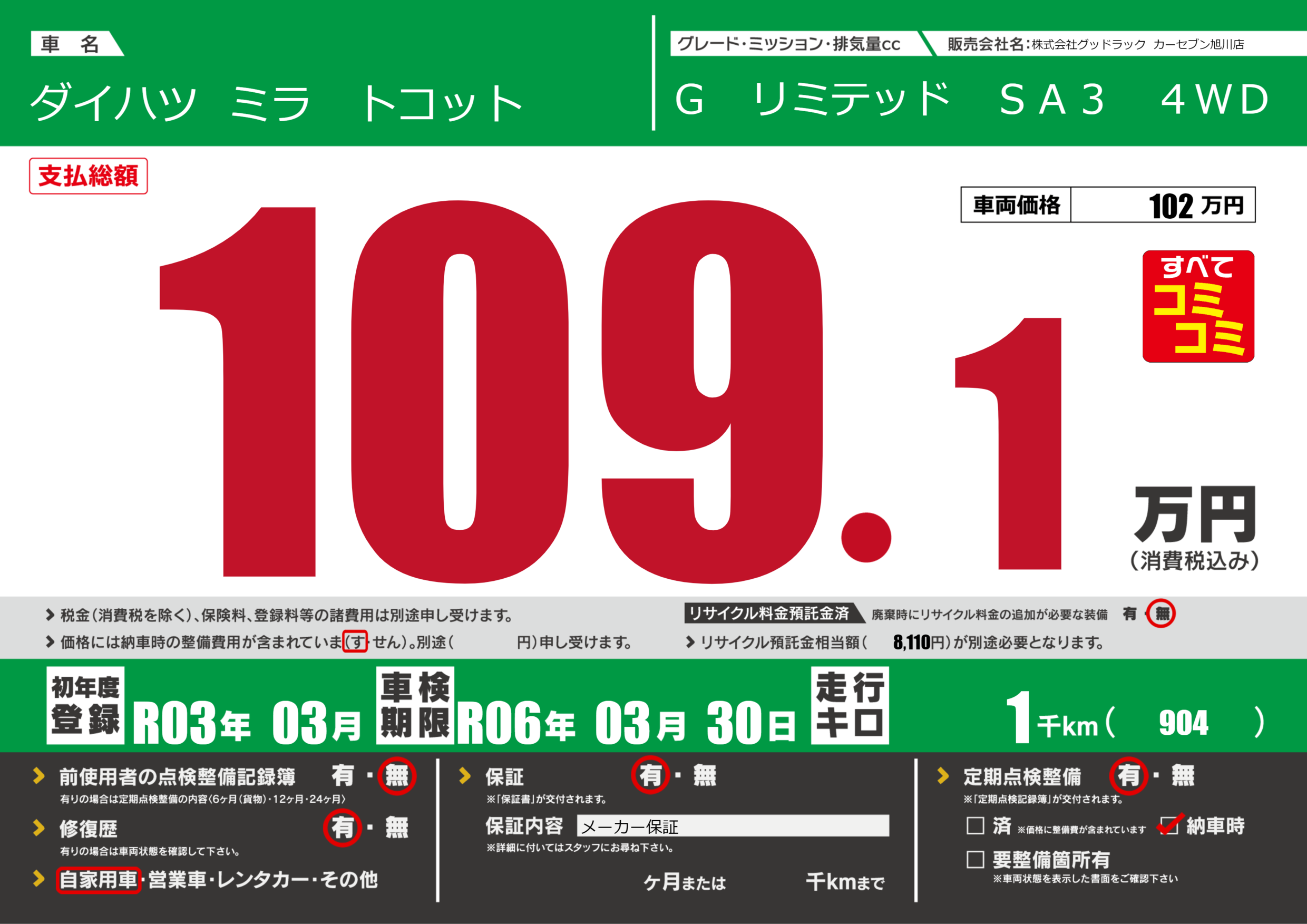 あり | 車検制限 | R06年03月30月 |