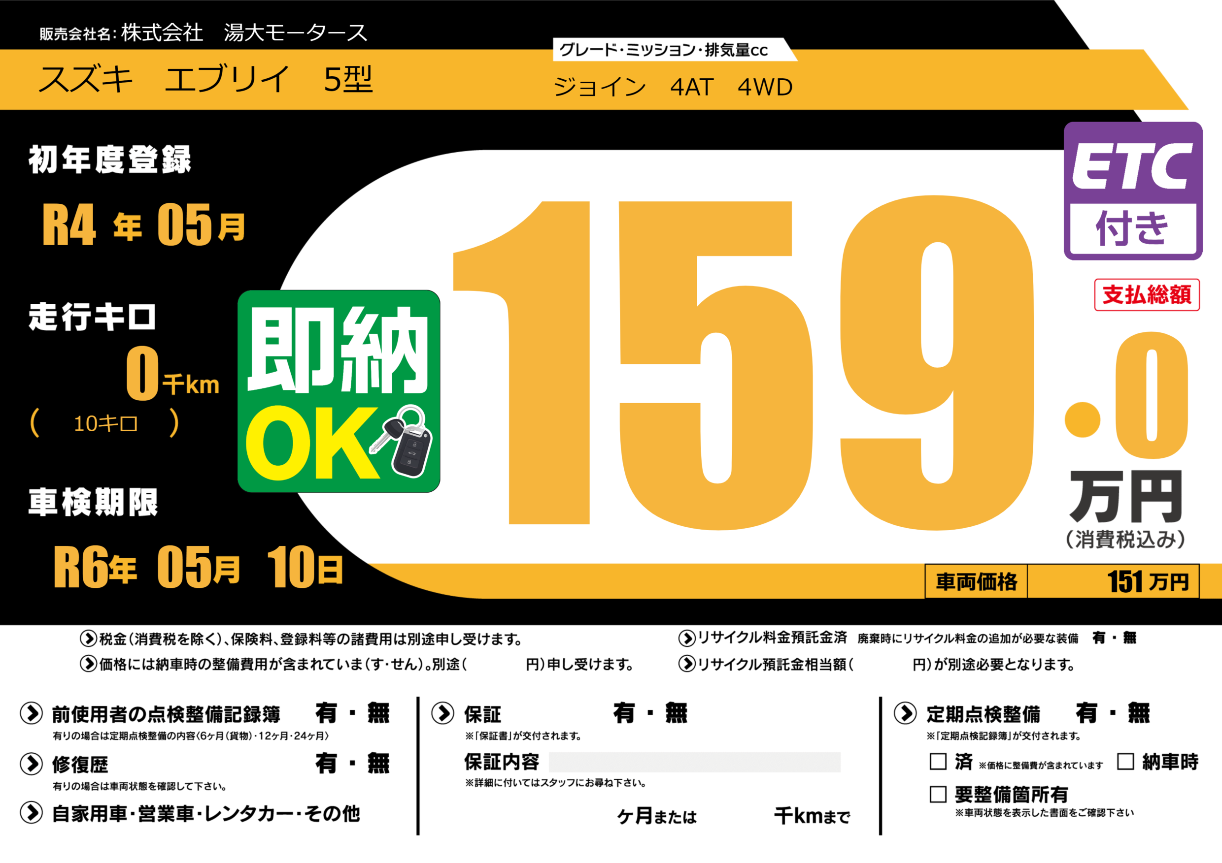 | 車名 | スズキ エブリイ 5型 | グレード ミッション 排気量 |