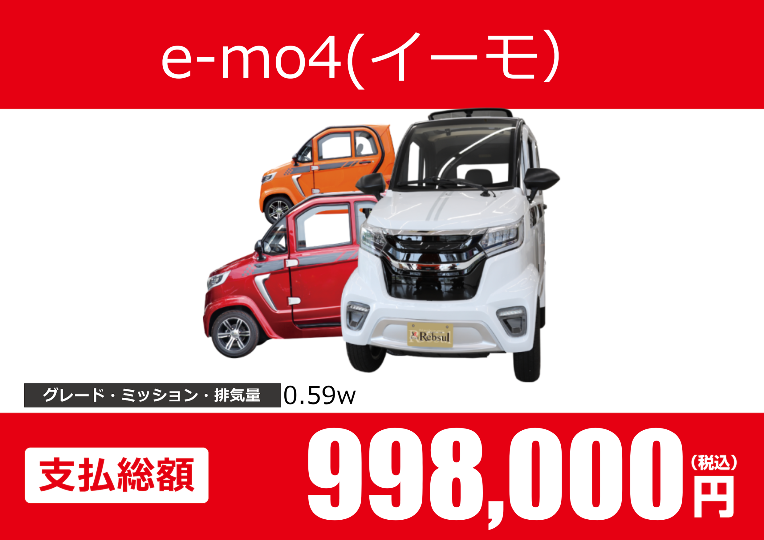 | 車名 | e-mo4(イーモ) | グレード ミッション 排気量 |