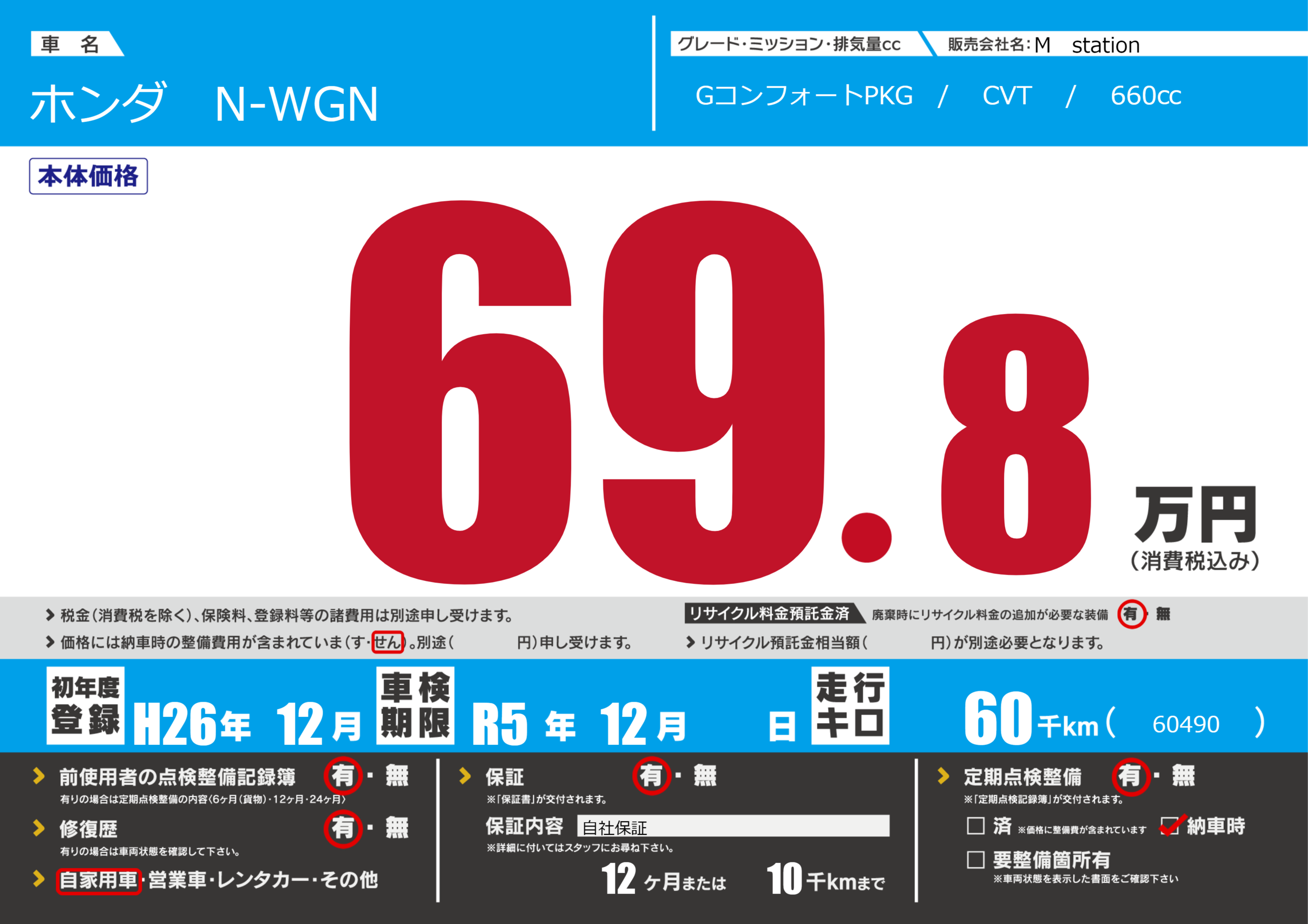 なし | 車検制限 | R5年12月---月 |