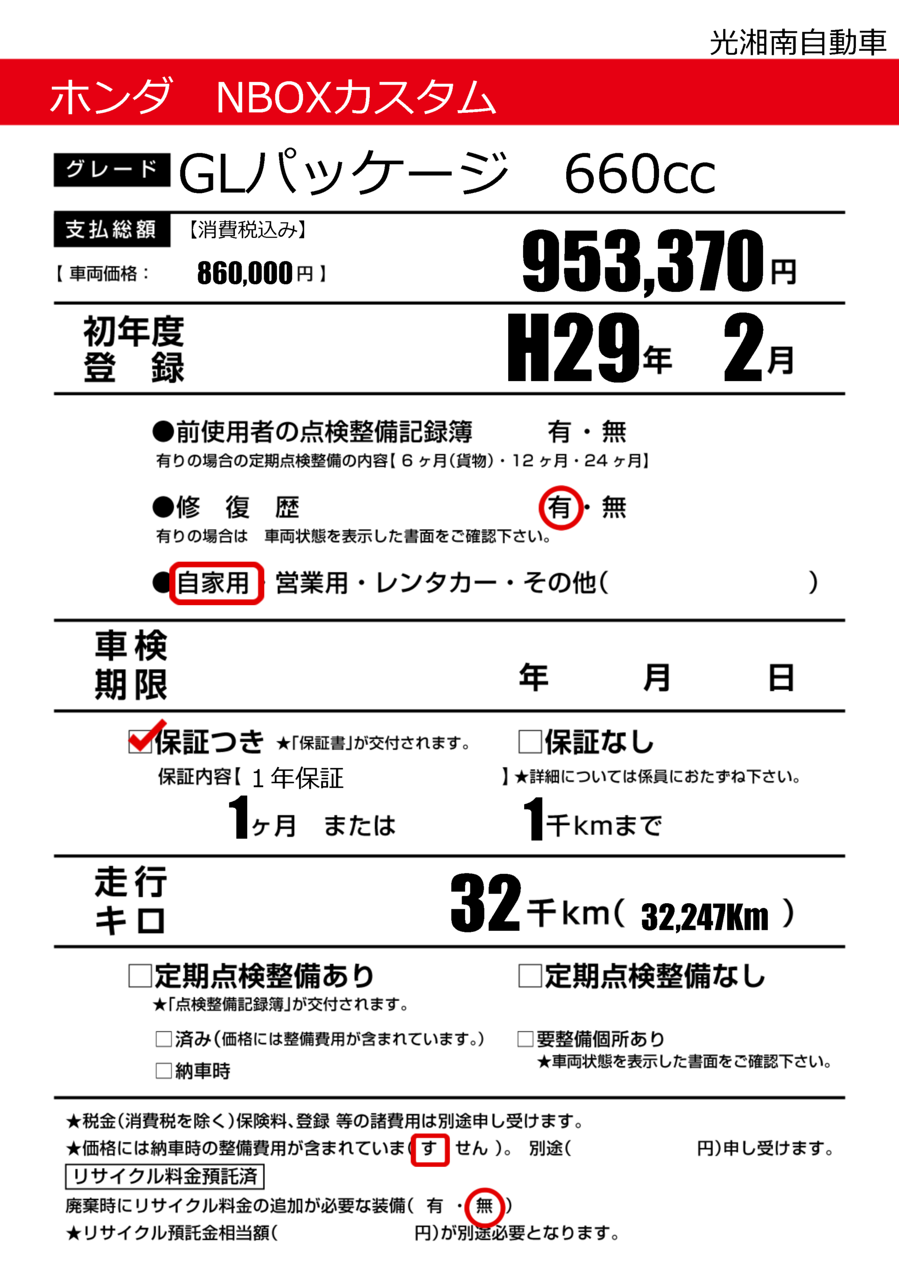 | 車名 | ホンダ NBOXカスタム | グレード ミッション 排気量 |