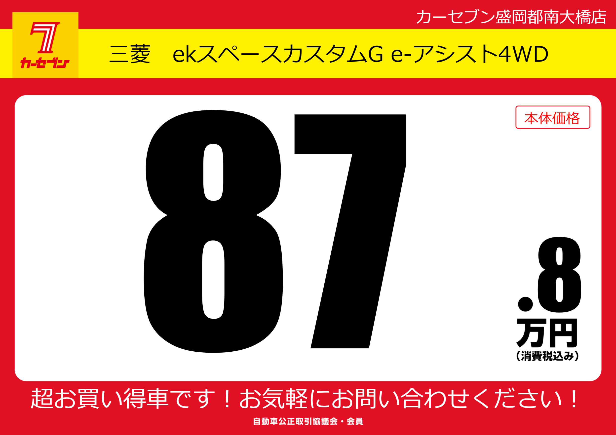 | 車名 | 三菱 ekスペースカスタムG e-アシスト4WD | グレード ミッション 排気量 |