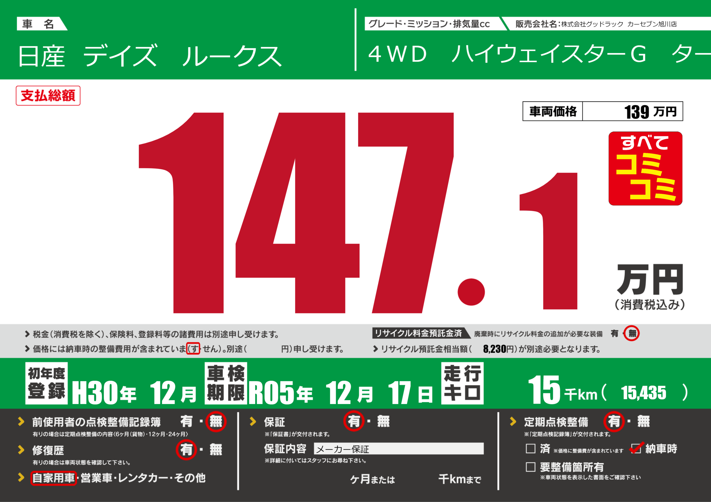 あり | 車検制限 | R05年12月17月 |