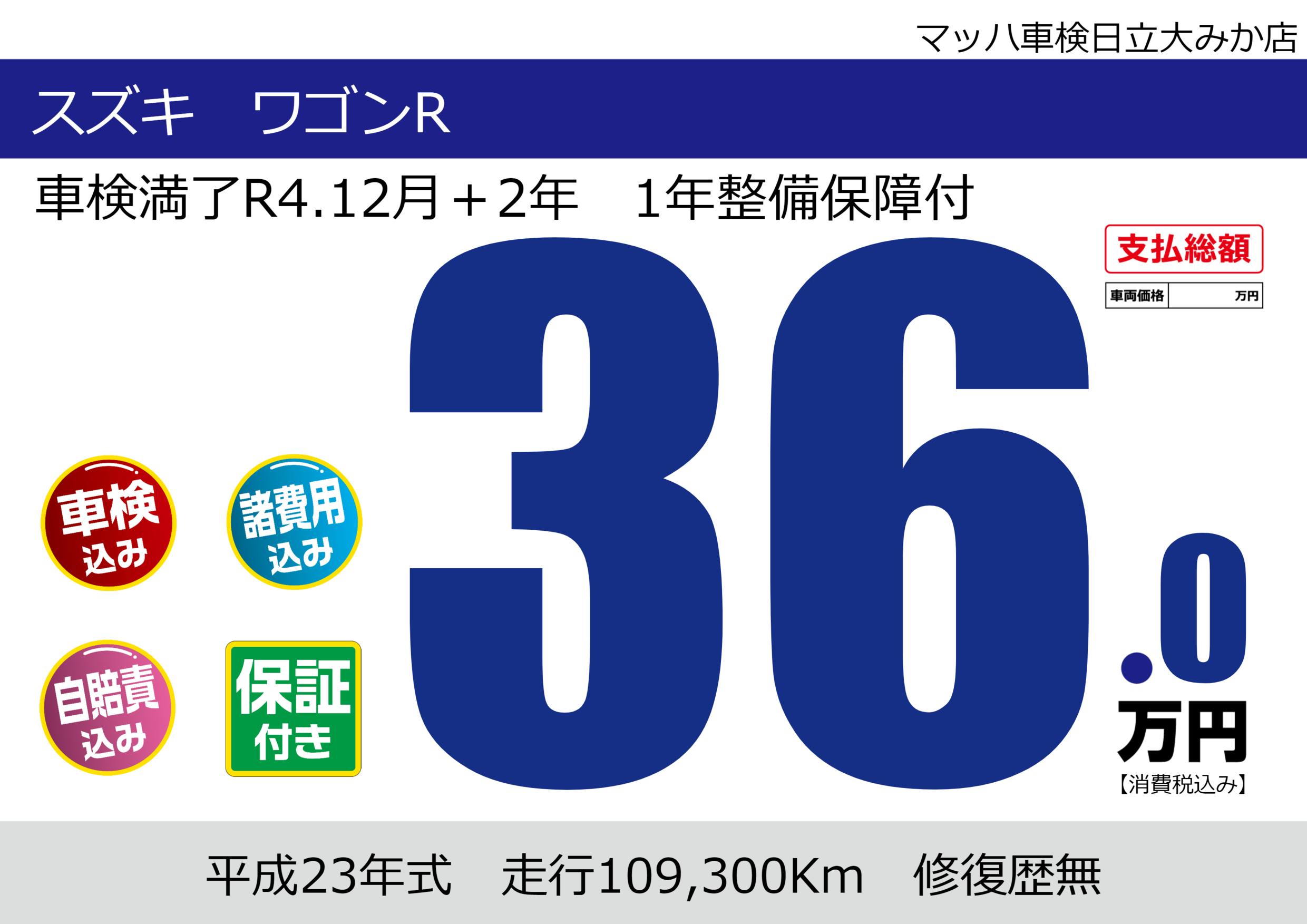 車検満了R4.12月+2年 1年整備保障付 |