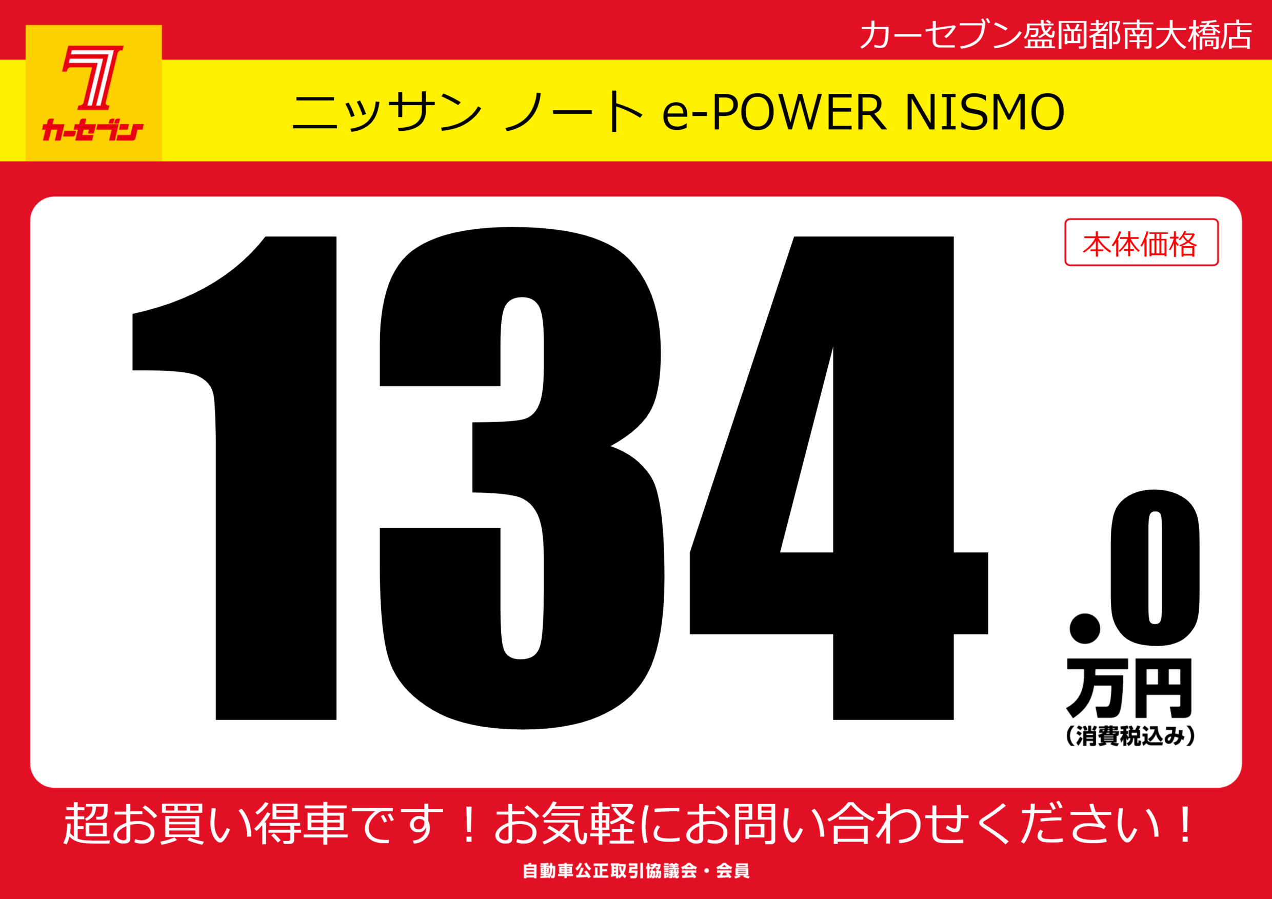 | 車名 | ニッサン ノート e-POWER NISMO | グレード ミッション 排気量 |