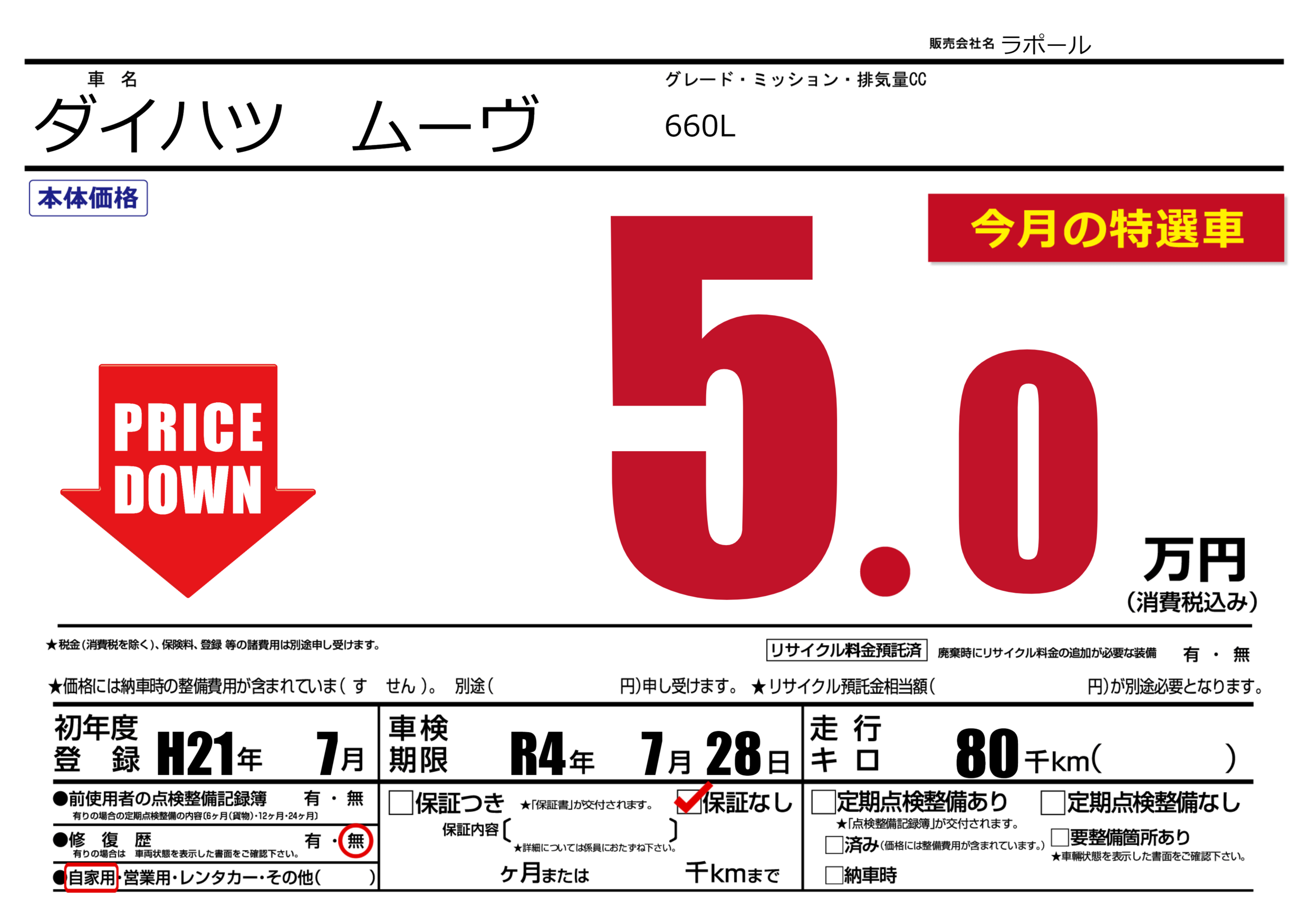 なし | 車検制限 | R4年7月28月 |