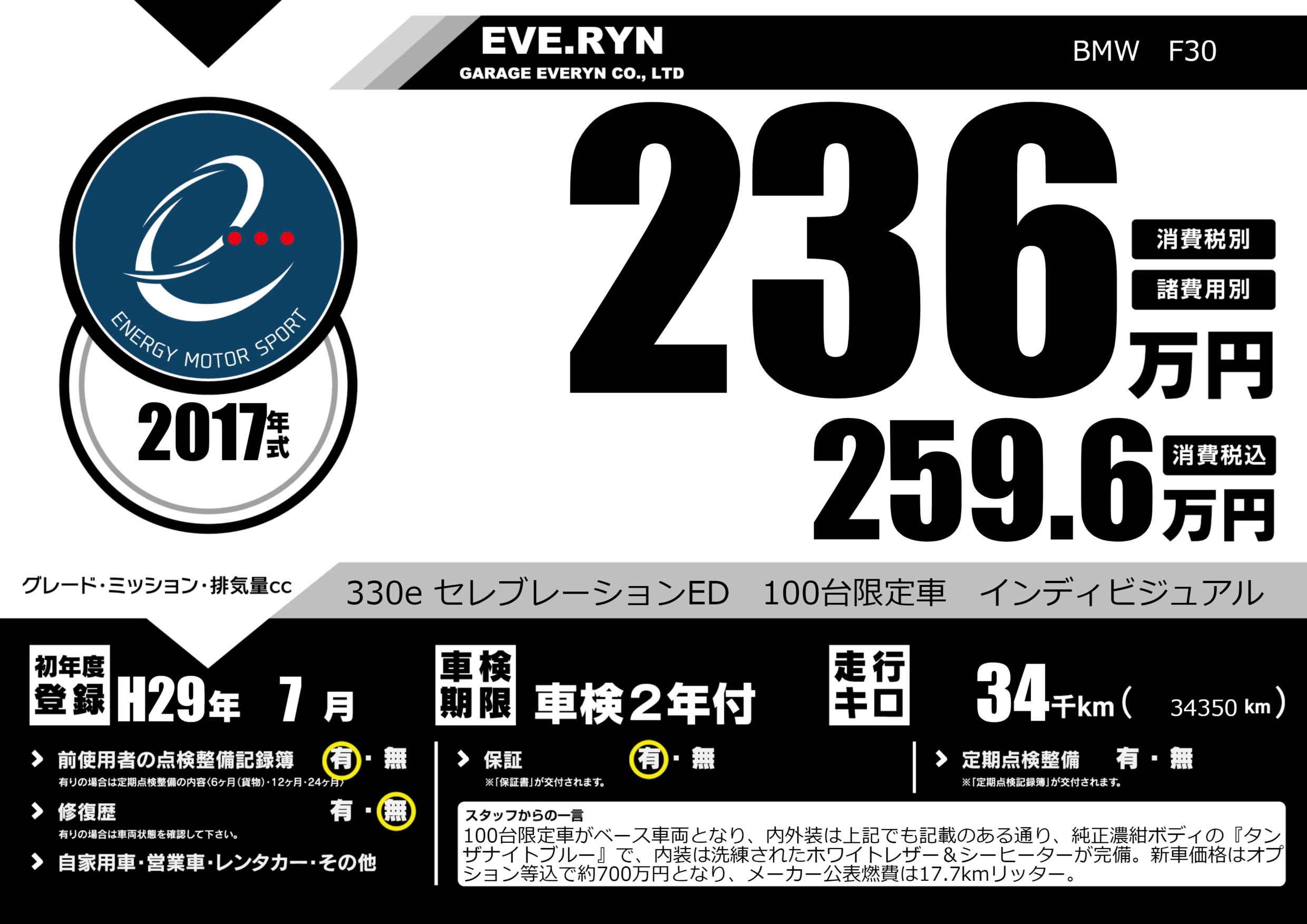 330e セレブレーションED 100台限定車 インディビジュアル |