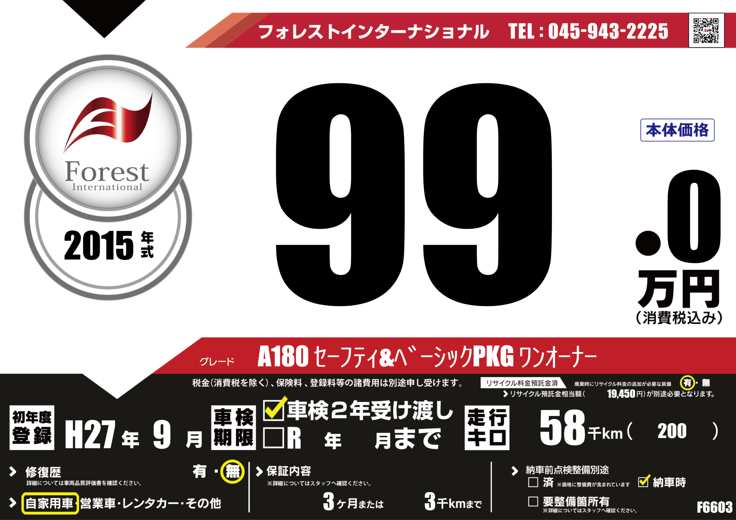 | 初年度登録 | H27年9月 | ||