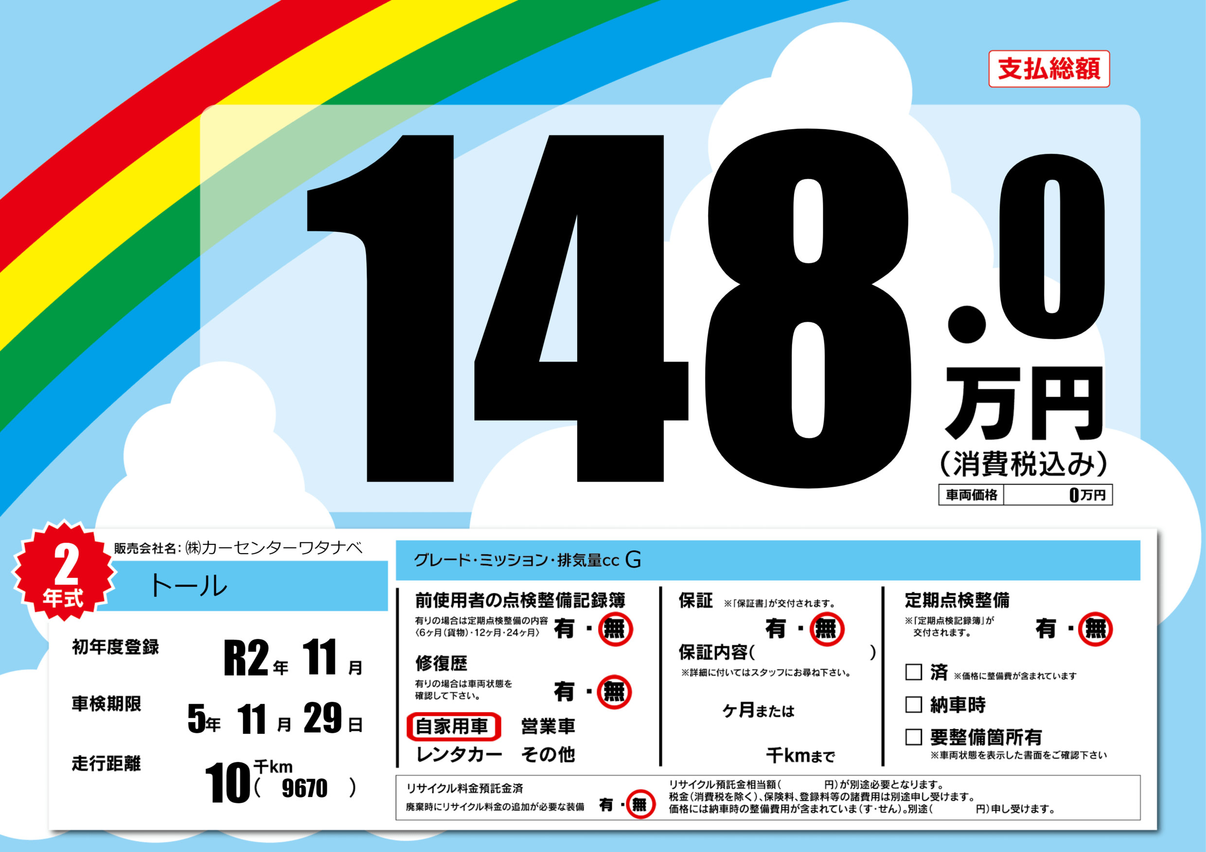 | 定期点検整備 | 定期点検整備なし | ||