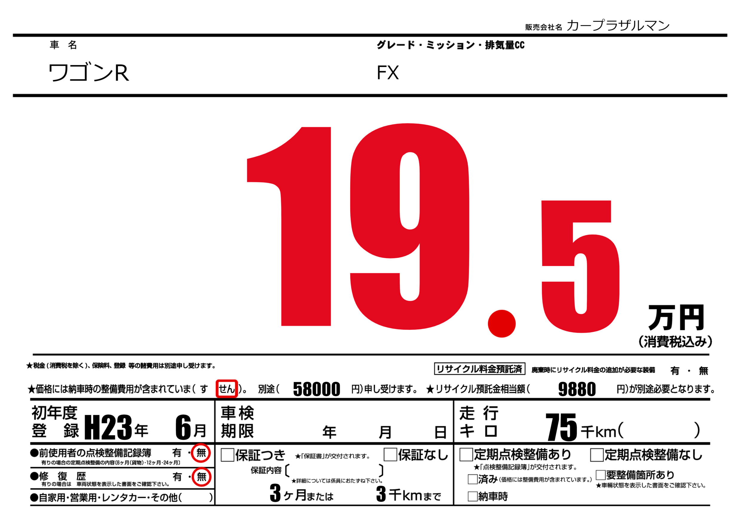 | 車名 | ワゴンR | グレード ミッション 排気量 |