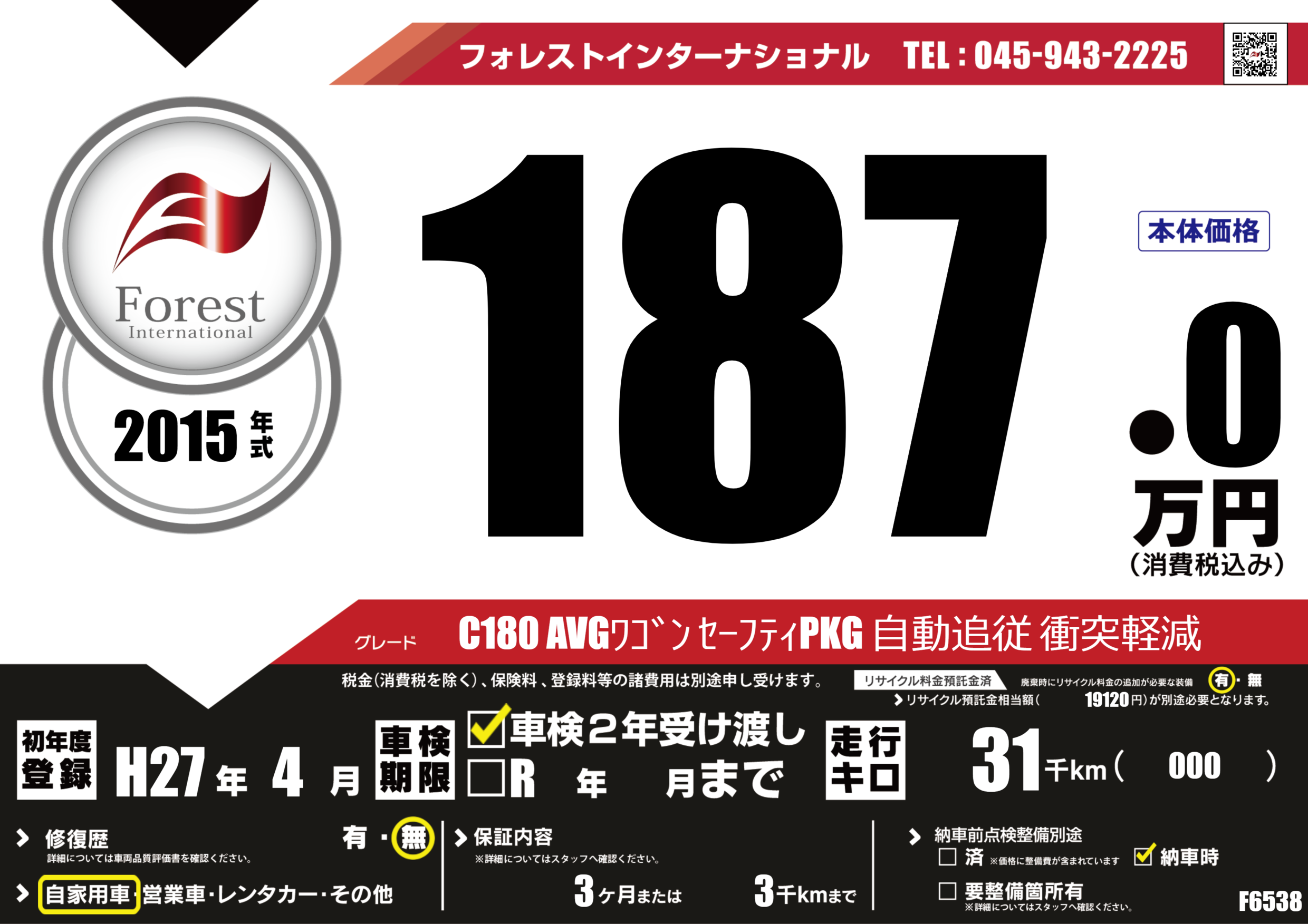 C180 AVGワゴン セーフティPKG 自動追従 衝突軽減 |