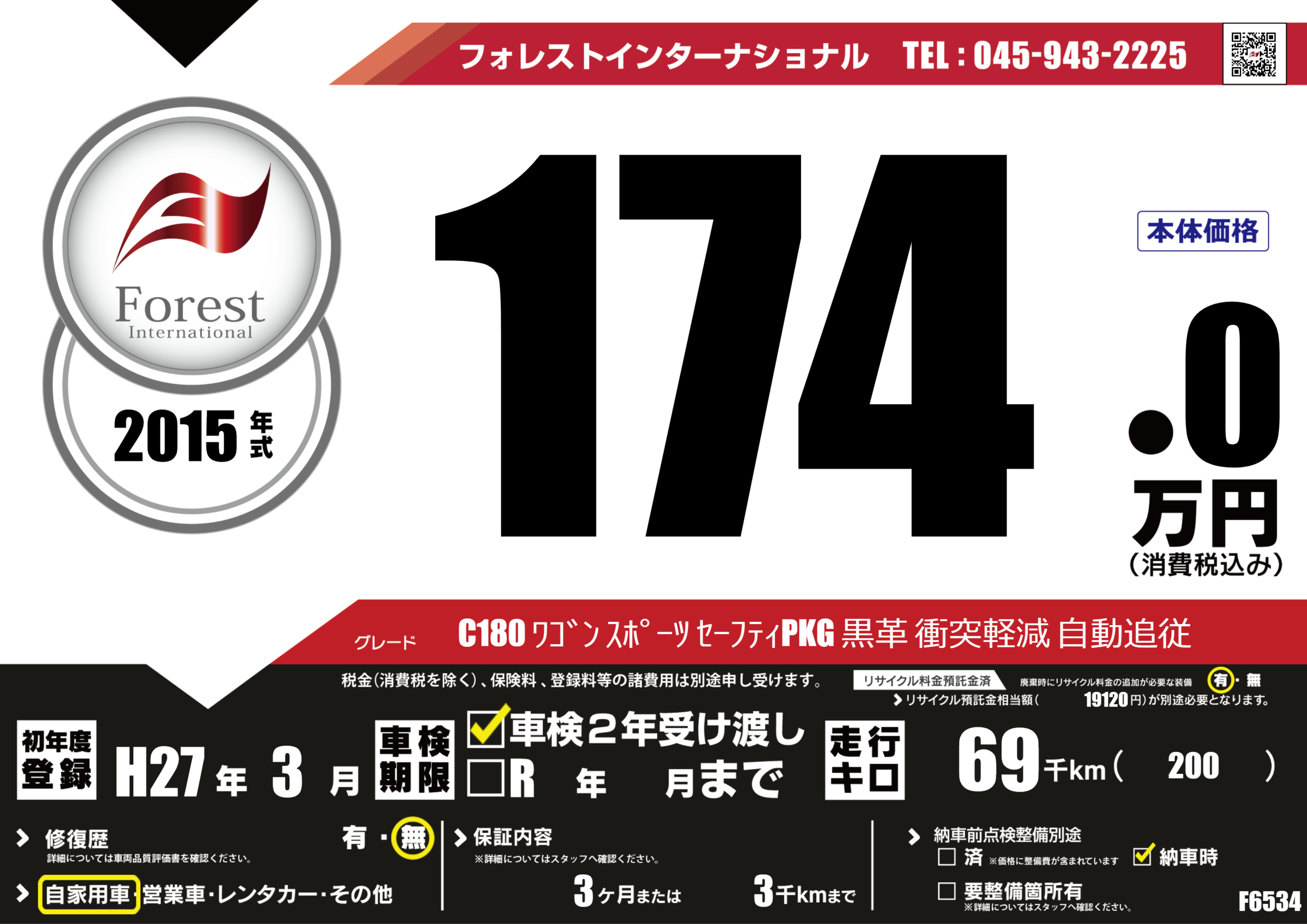 | 走行キロ | 6.9万km | 初年度登録 | H27年3月 |