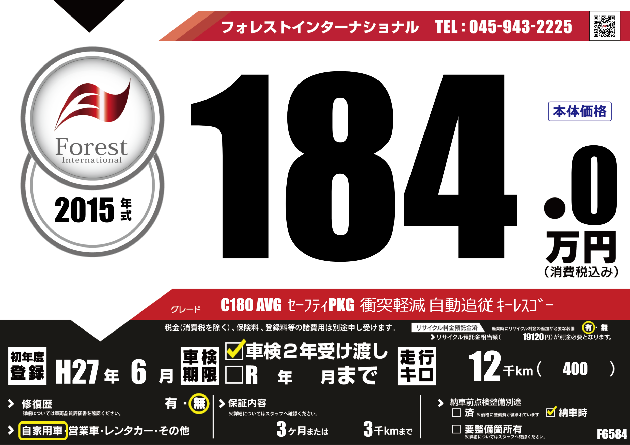 | 走行キロ | 1.2万km | 初年度登録 | H27年6月 |