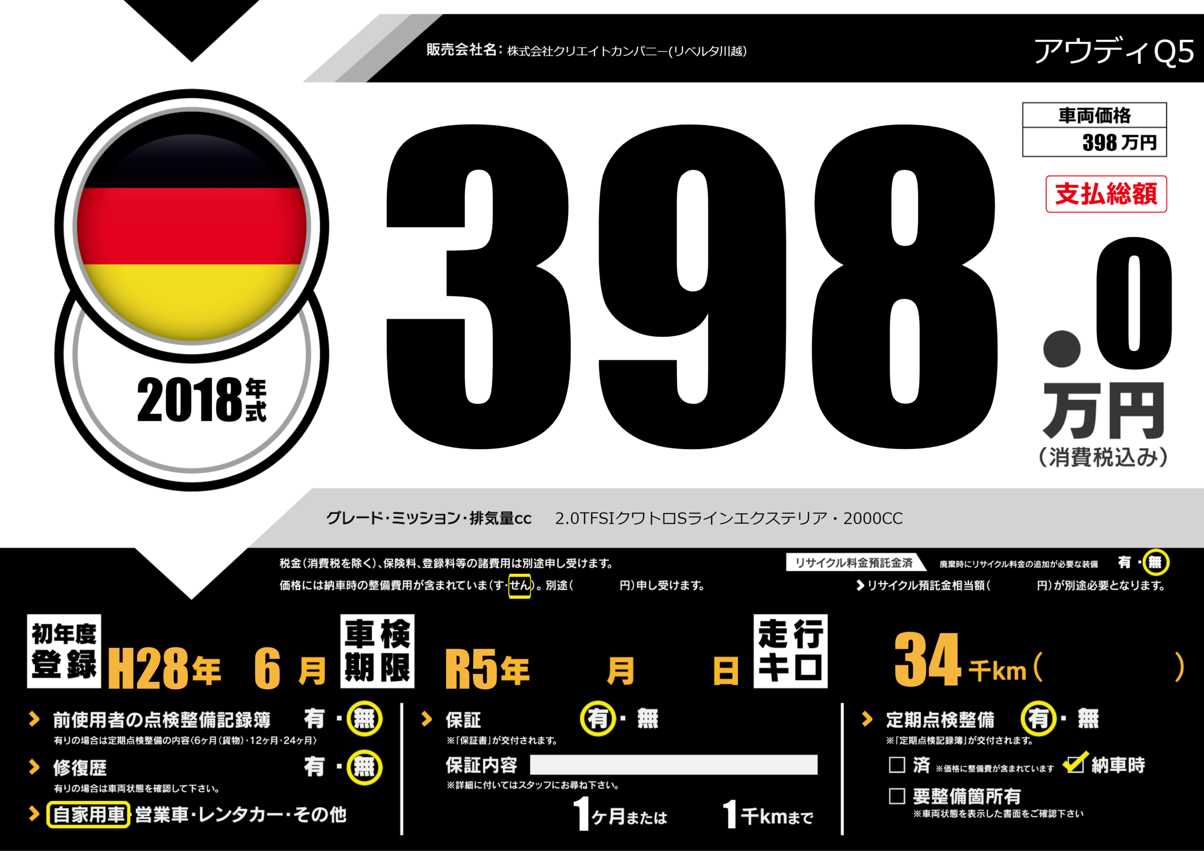 | 車名 | アウディQ5 | グレード ミッション 排気量 |