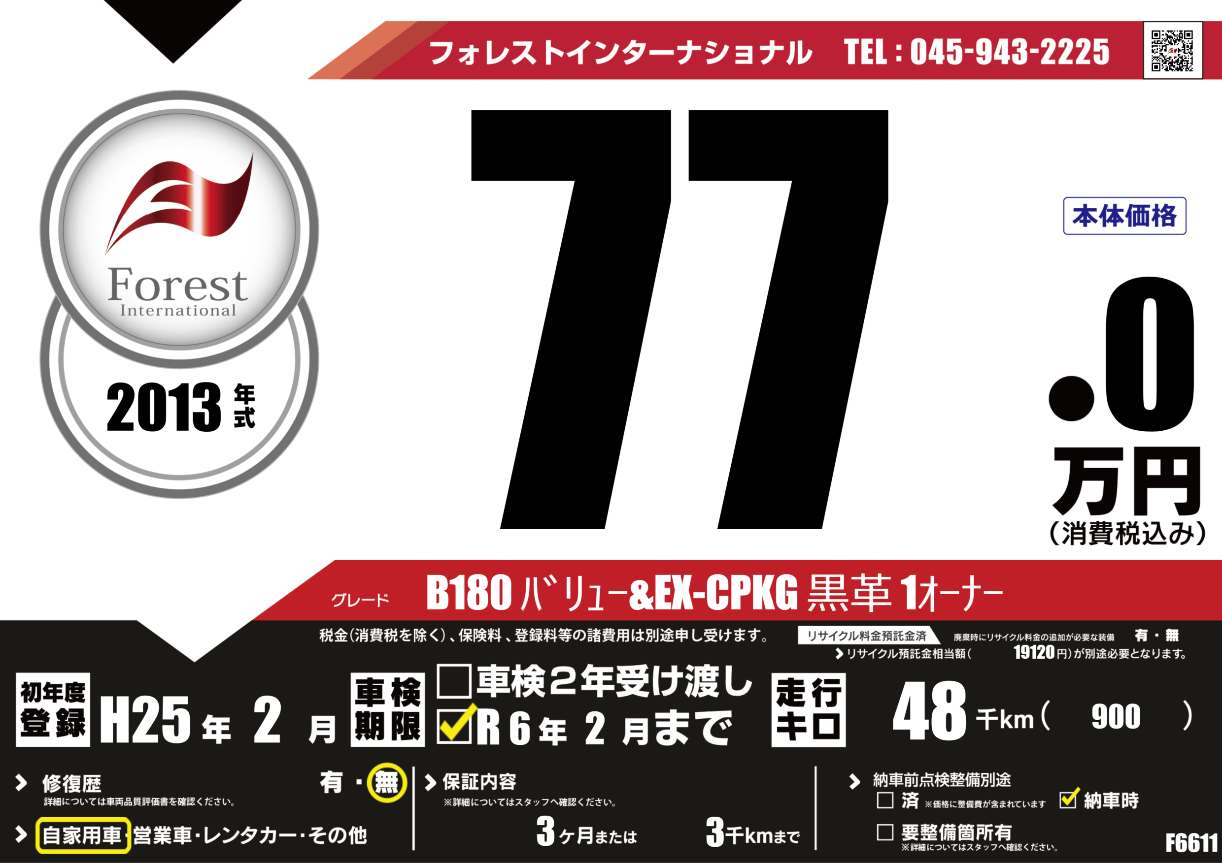 B180 バリュー&EX-CPKG 黒革 1オーナー |