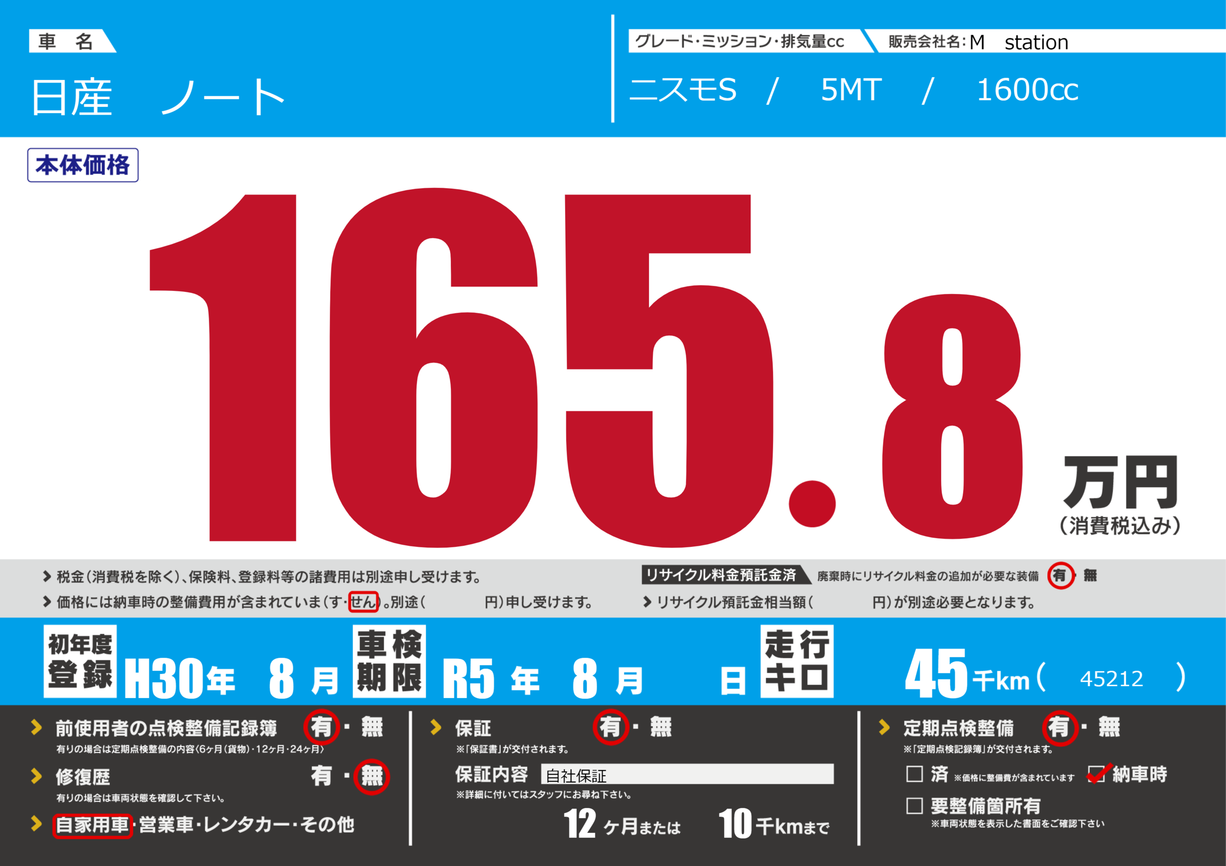 なし | 車検制限 | R5年8月---月 |