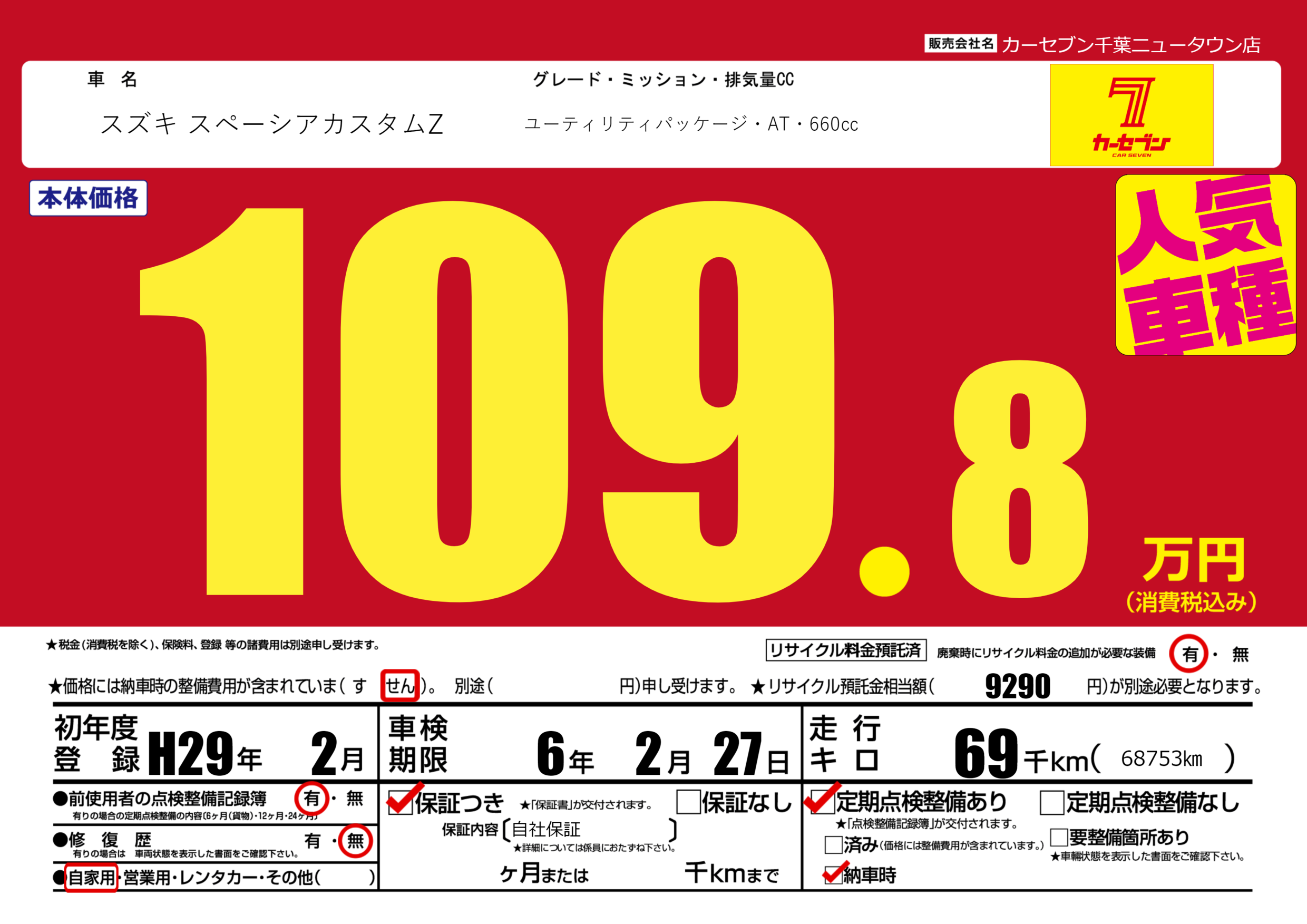 なし | 車検制限 | 6年2月27月 |