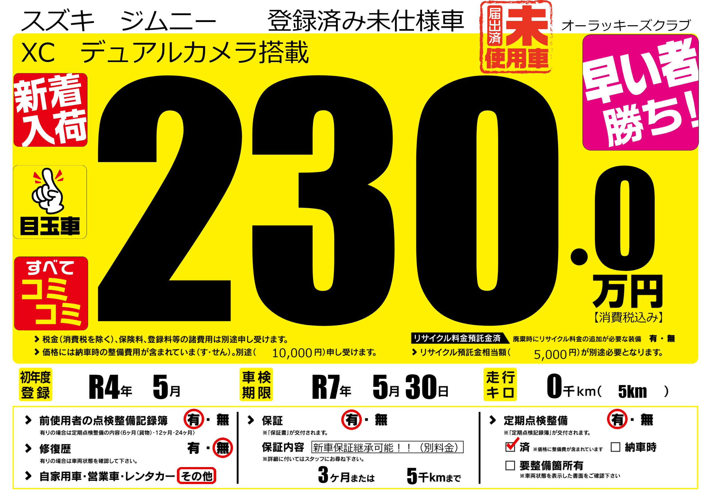 保証内容(新車保証継承可能!!(別料金)) 3ヶ月または5千km