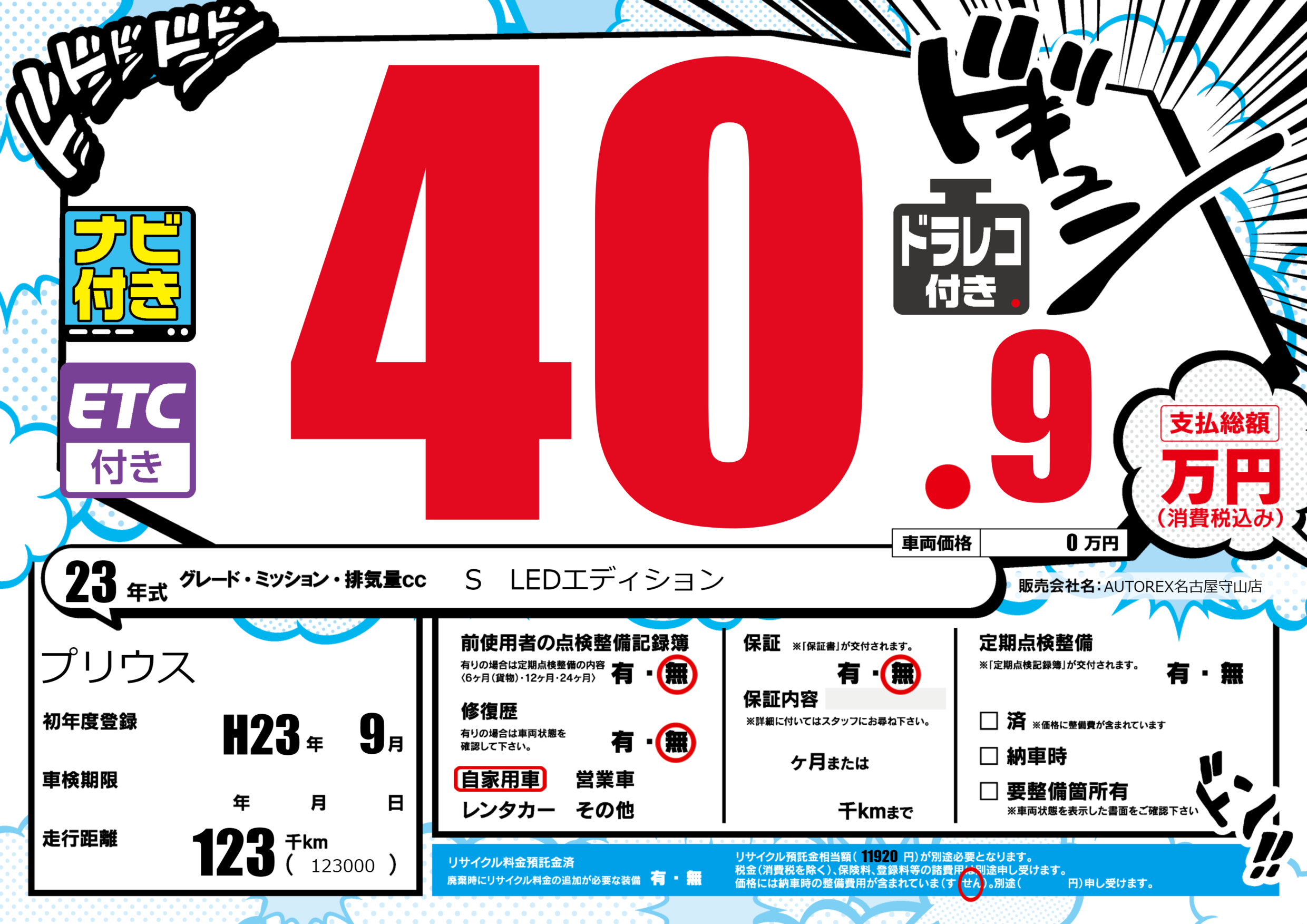 | 走行キロ | 12.3万km | 初年度登録 | H23年9月 |