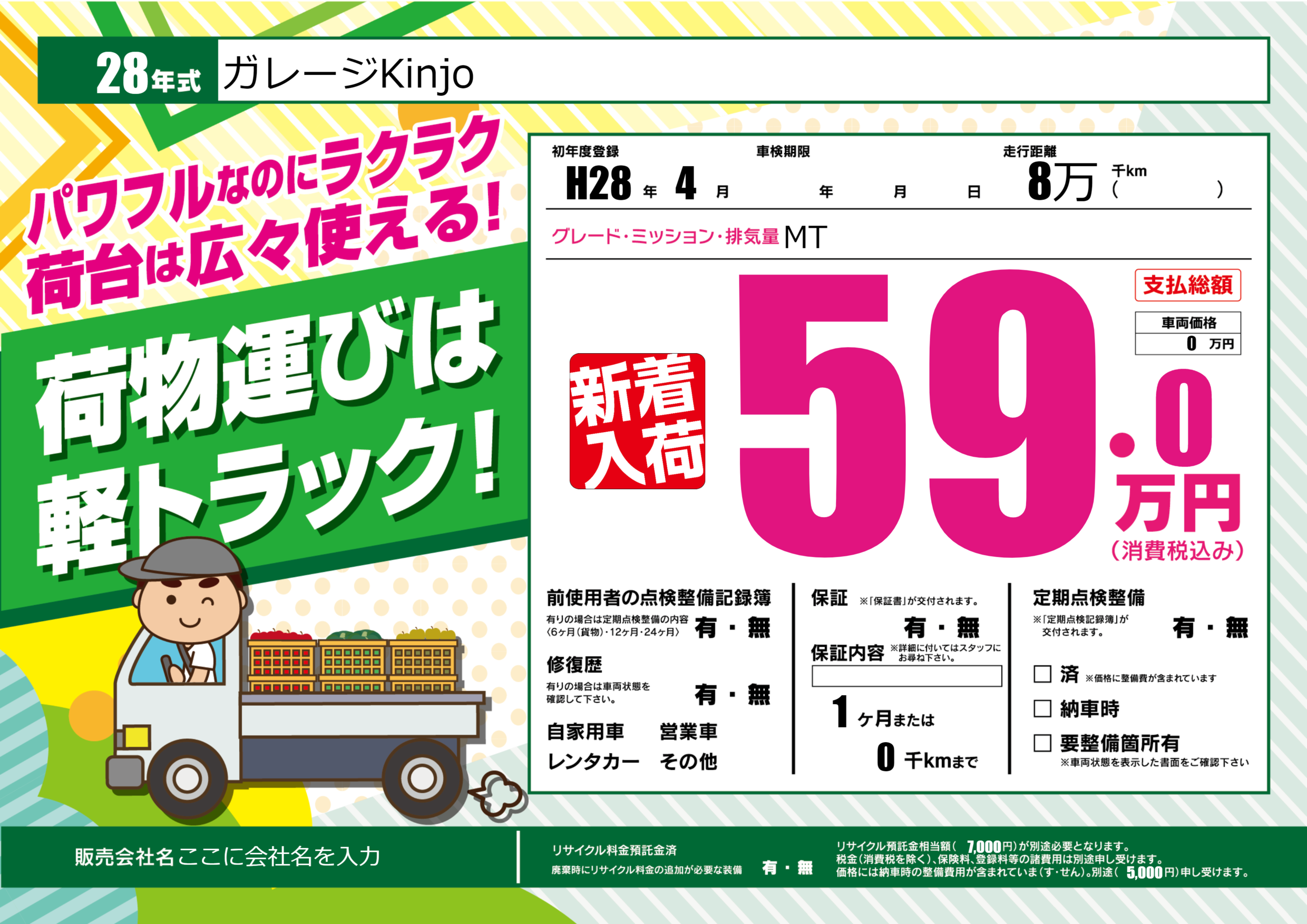 保証なし 保証内容(---) 1ヶ月または(0)千kmまで |