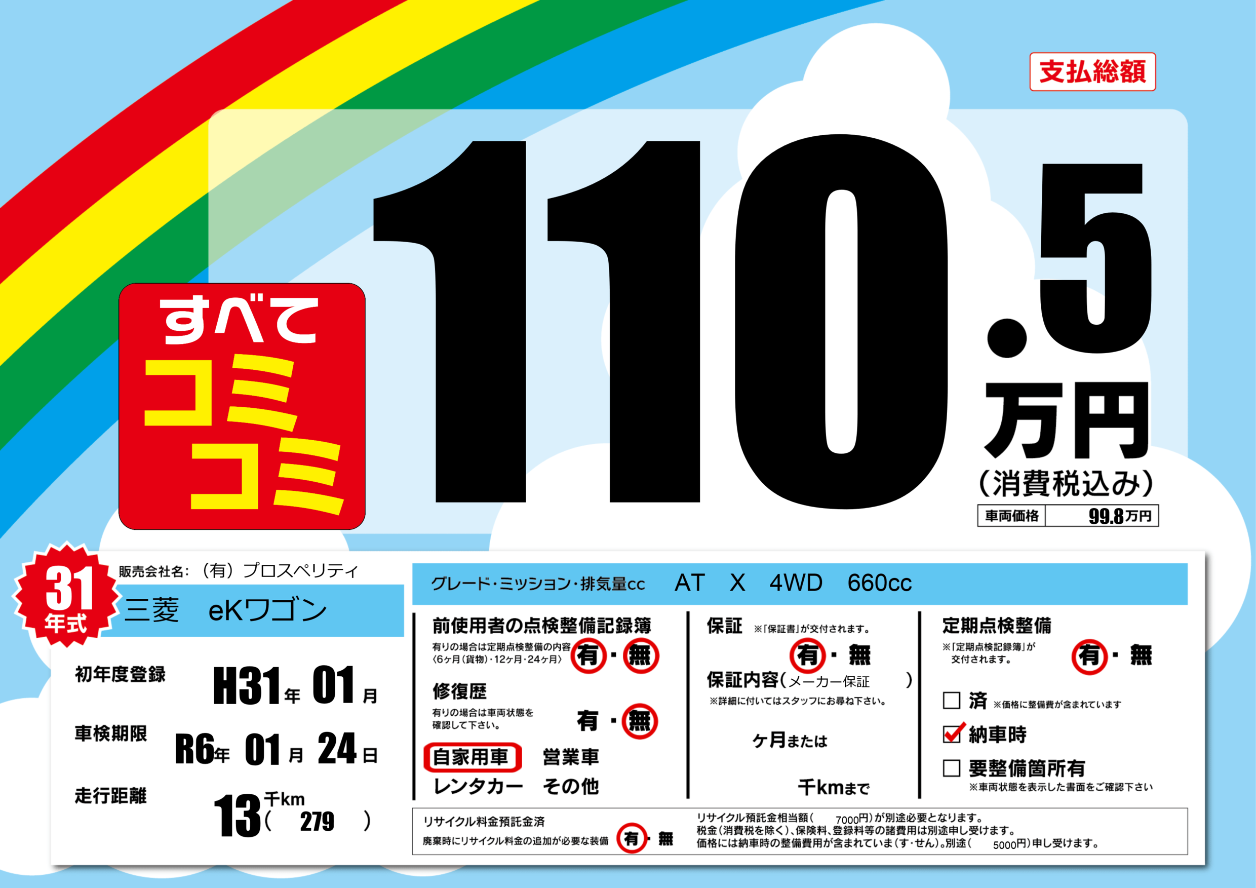 | 定期点検整備 | 定期点検整備あり 納車時あり | ||