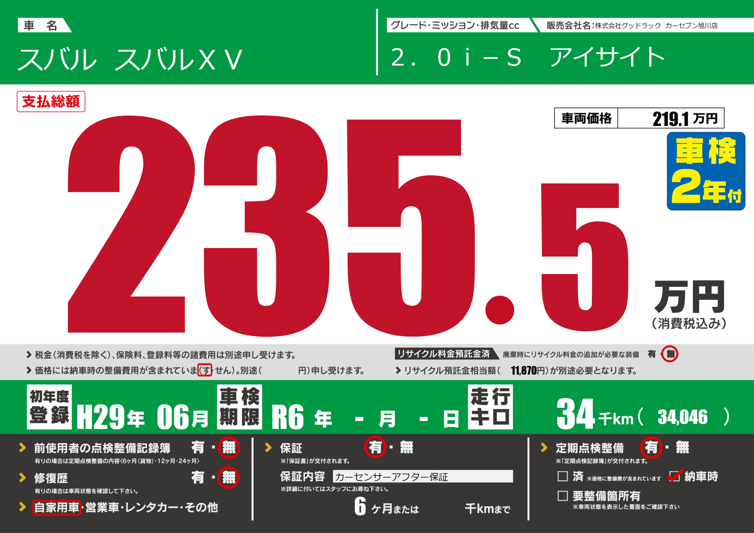 | 車検制限 | R6年 -月 -日 | ||