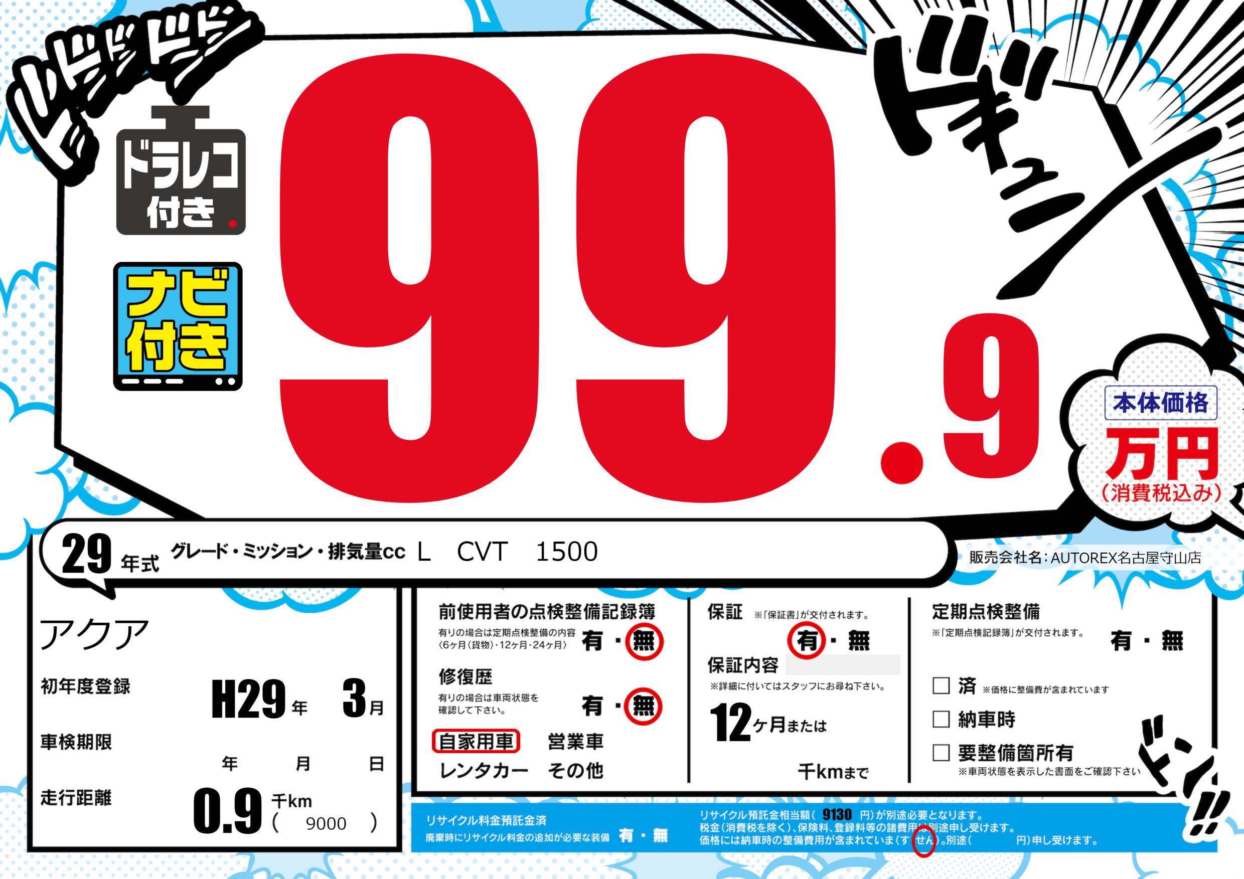 | 走行キロ | - | 初年度登録 | H29年3月 |