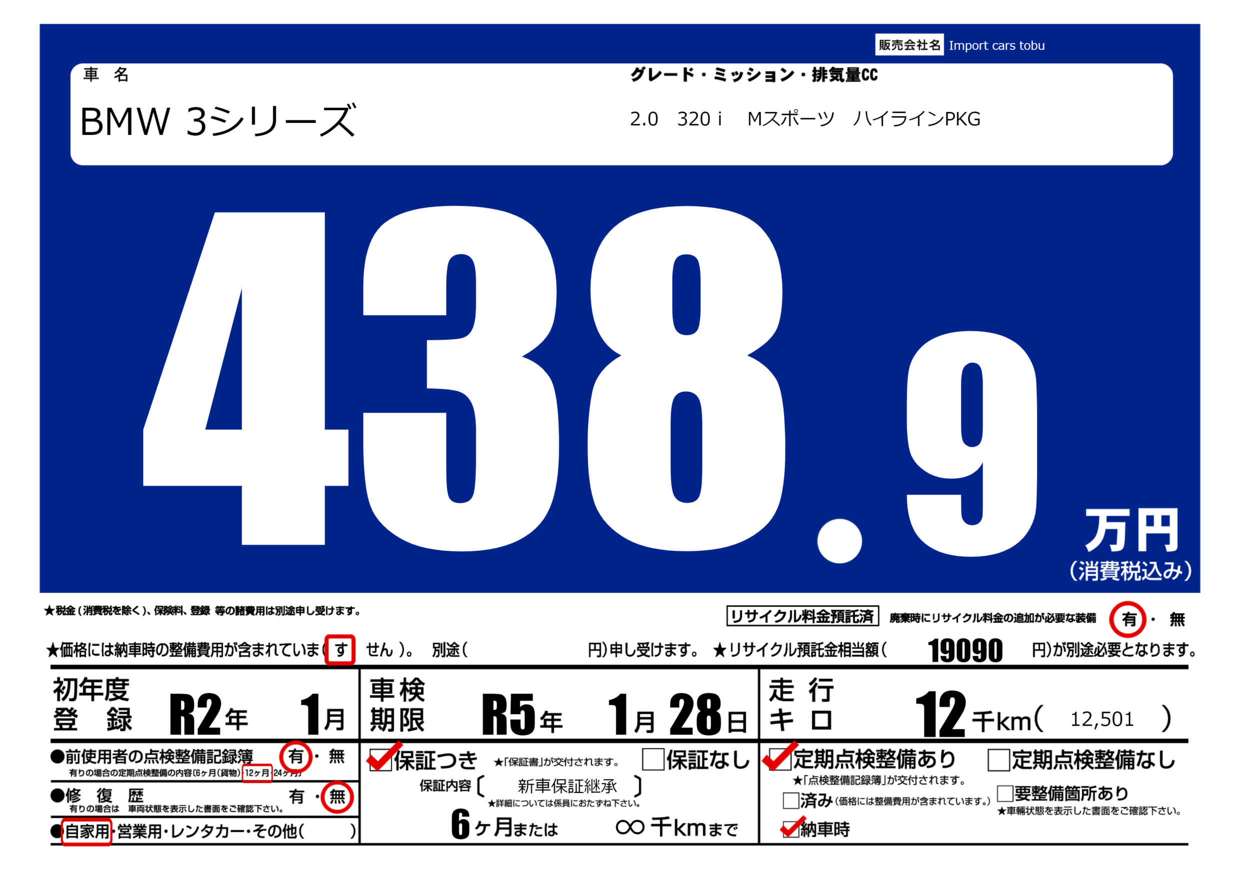 | 定期点検整備 | 定期点検整備あり 納車時あり | ||