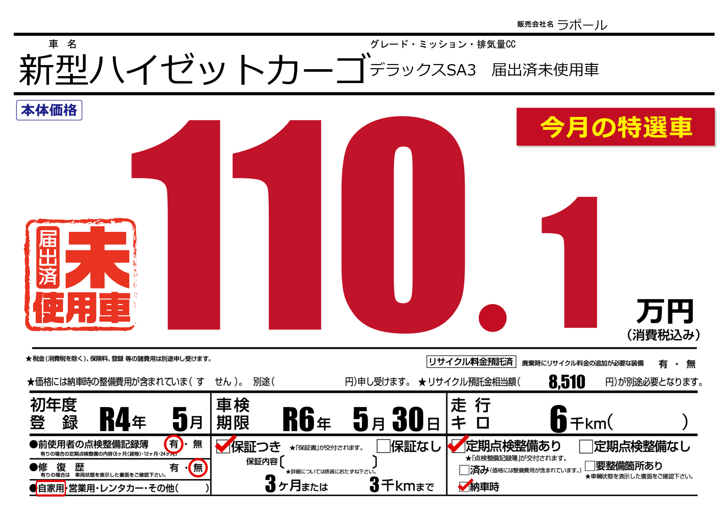 保証付き 保証内容(---) 3ヶ月または(3)千kmまで |